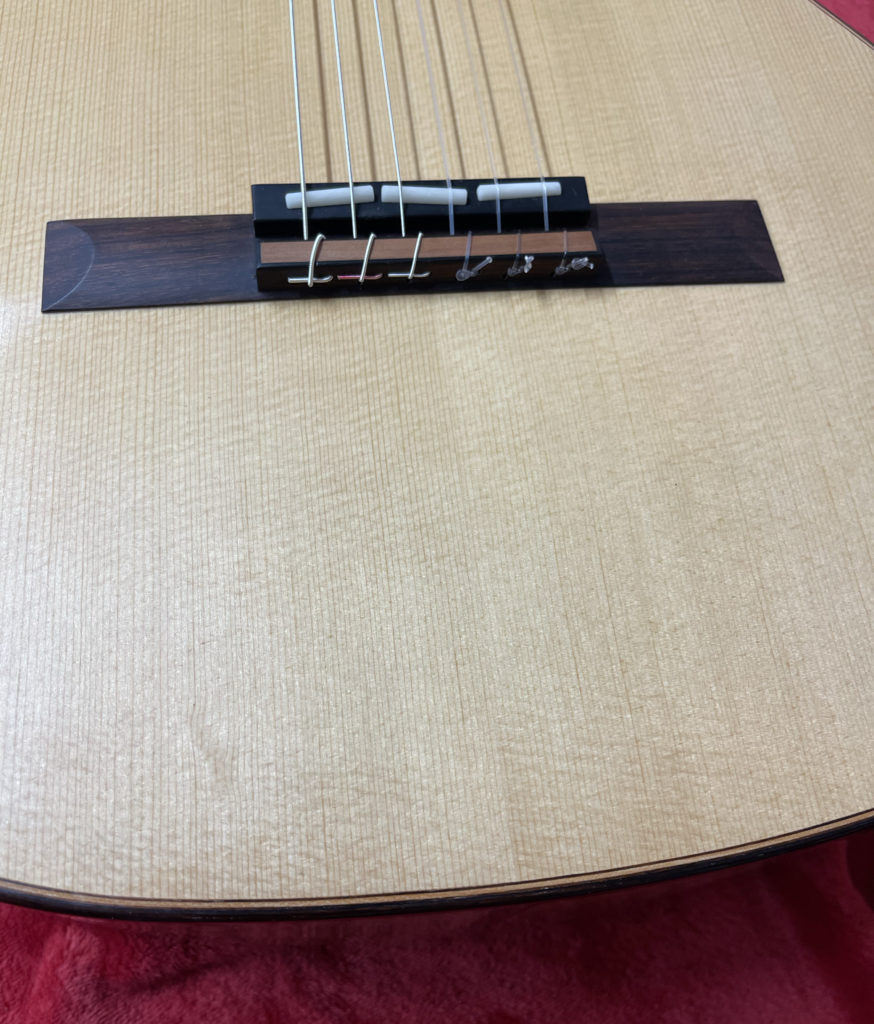 This instrument features the combination fan bracing + service tree. The guitar has been played frequently at exhibitions and during the workshop concert, and therefore shows light signs of use, which is reflected in the reduced price of CHF 7,900.
