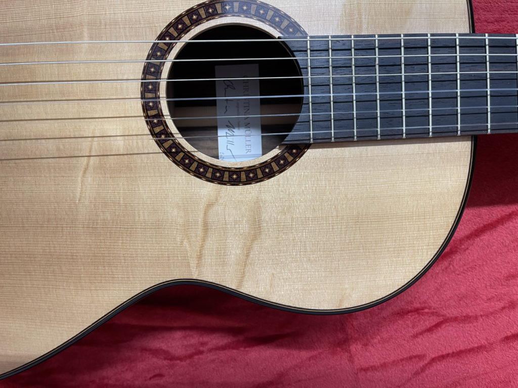 This guitar is currently located in Christina Müller’s workshop in Basel, where it can be tried out without obligation.