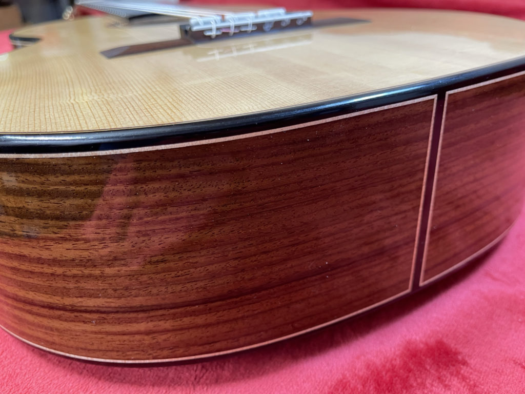 This instrument features the combination lattice bracing + East Indian rosewood. The guitar has been played frequently at exhibitions and during the workshop concert, and therefore shows light signs of use, which is reflected in the reduced price of CHF 9,800.