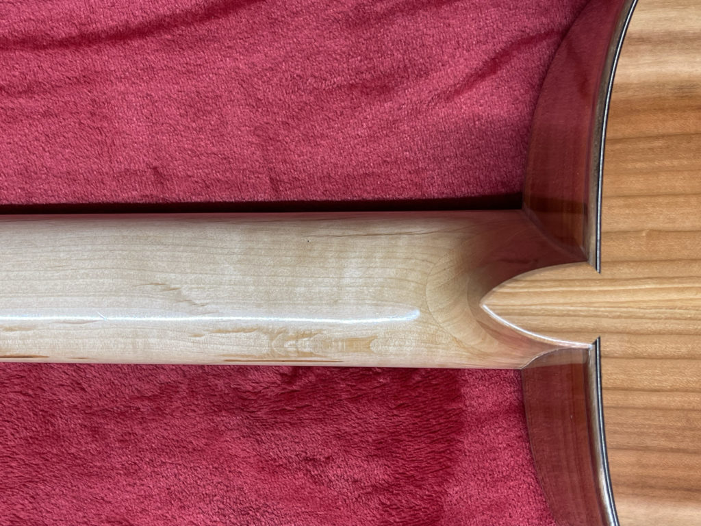 Mensur: 650 mm Decke: Fichte Boden und Zargen: Zwetschge Hals: Erle Griffbrett: Rocklite Steg: Zwetschge Mechaniken: Rubner
