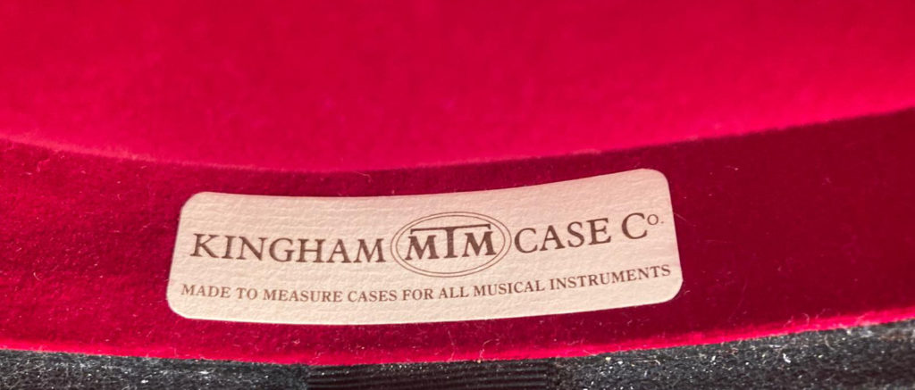 Koffer von KINGHAM MTM CASES, genau auf die Maße des Instruments zugeschnitten.