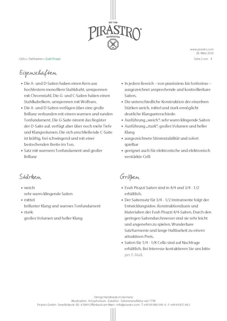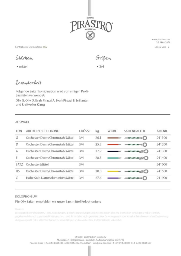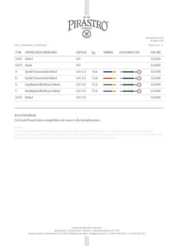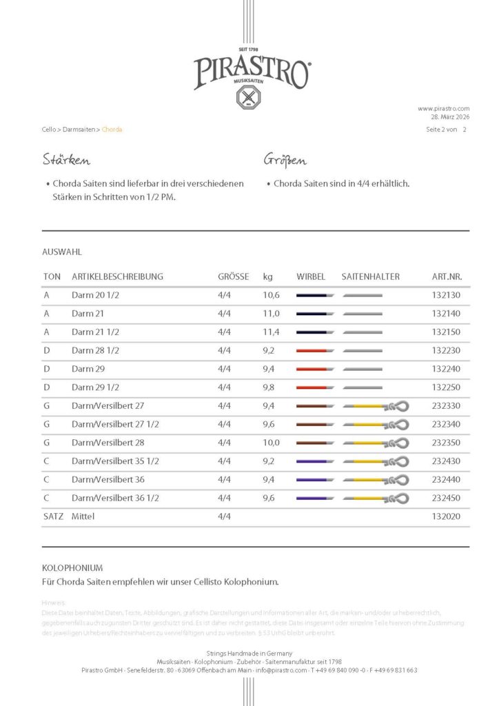 Pirastro’s range of strings is very comprehensive. On this sound chart you can obtain some orientation.