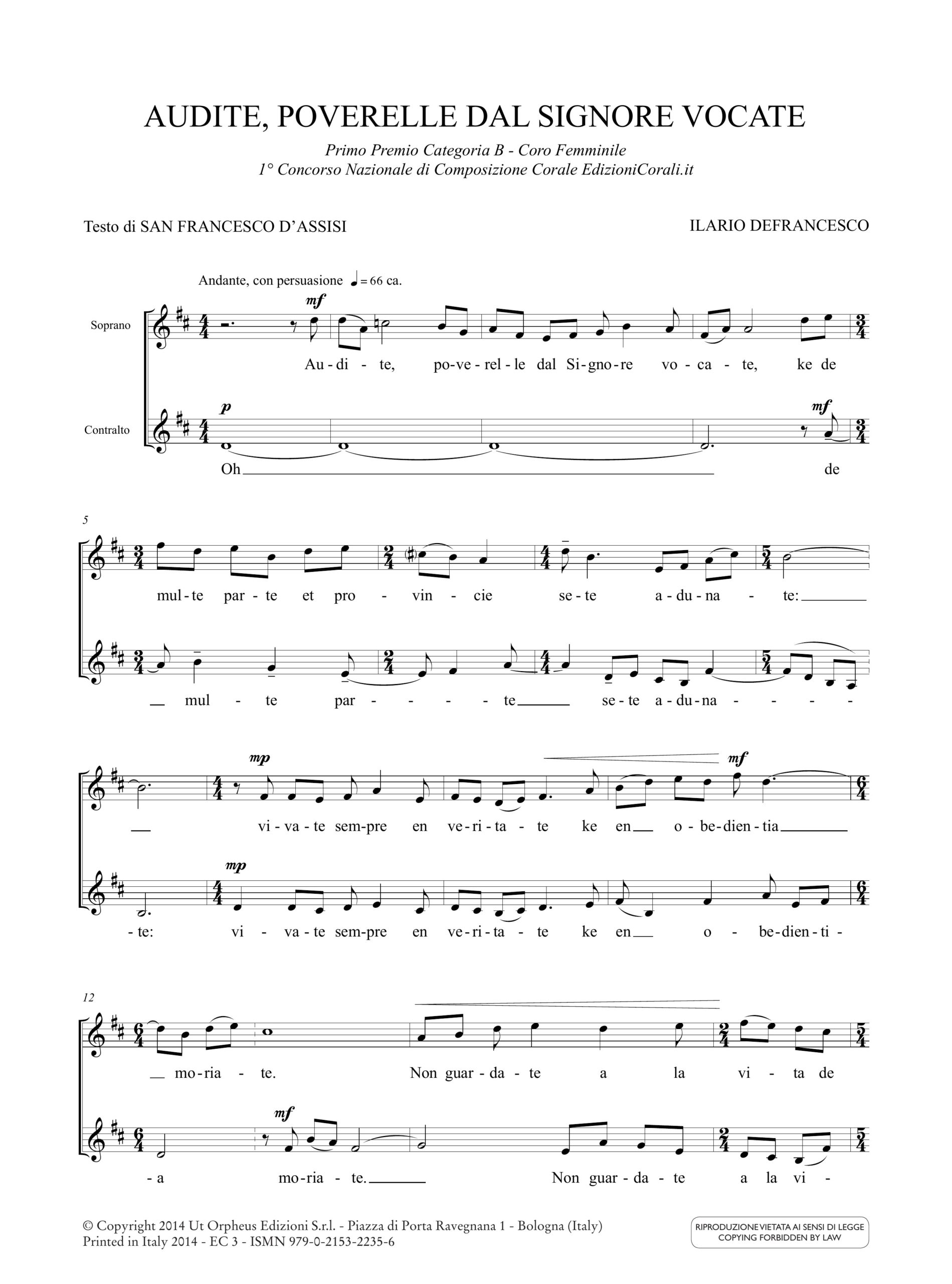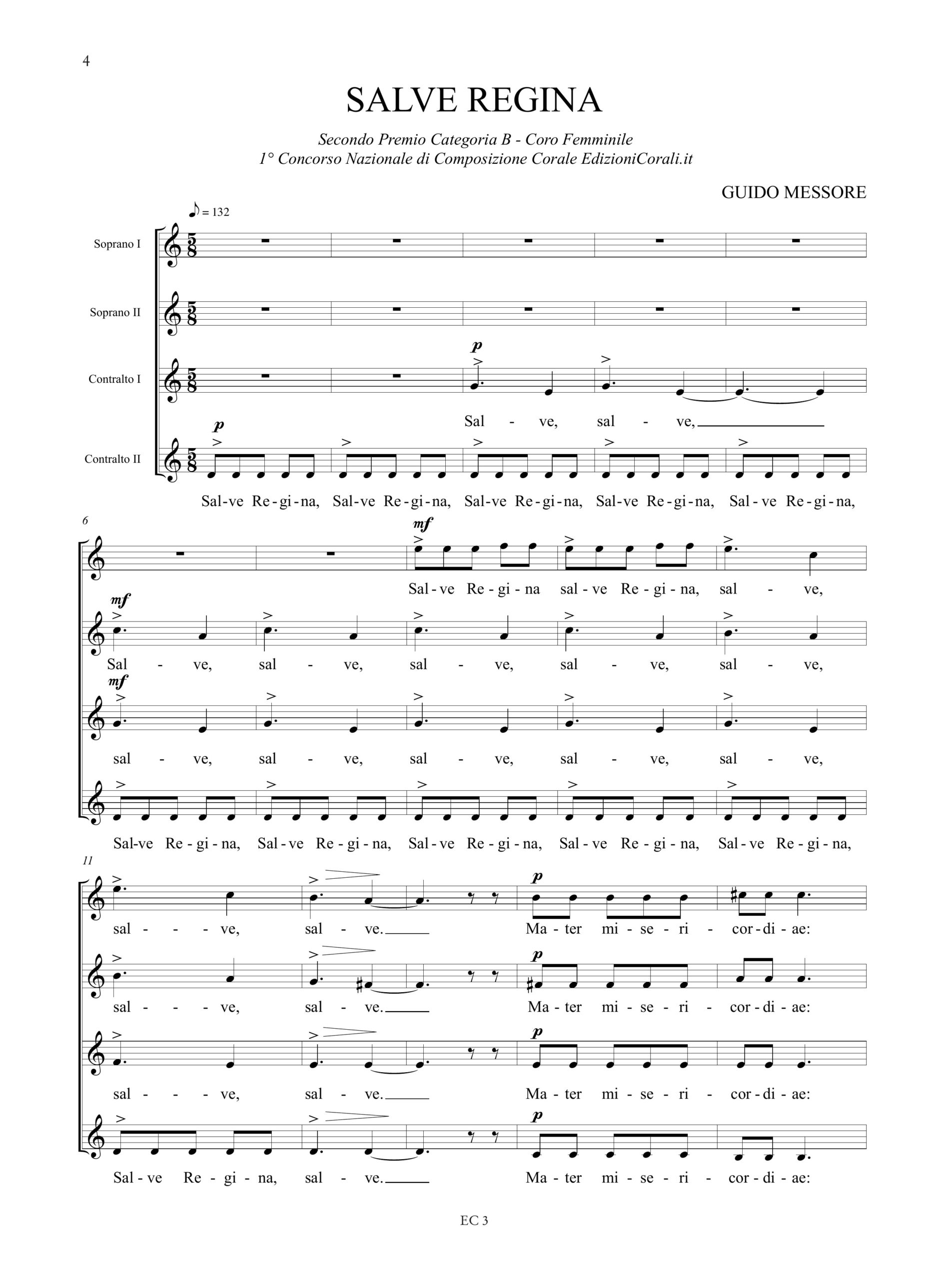 4 Composizioni Sacre per Coro Femminile (1° Concorso Nazionale di Composizione Corale EdizioniCorali.it – Arco, 2013 – Cat. B)
