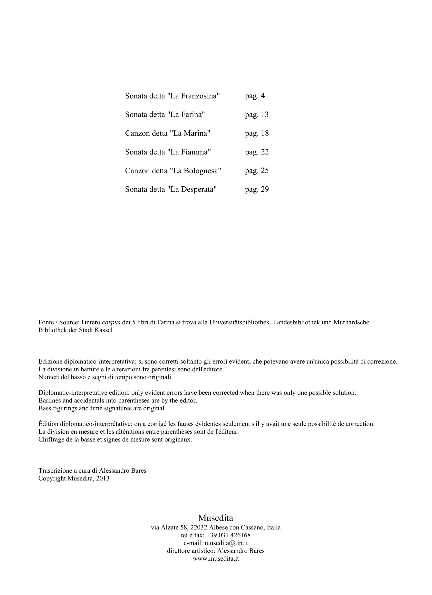 C. Farina – 4 Sonate e 2 Canzoni per violino e b.c. (Dresden, 1626-1628)