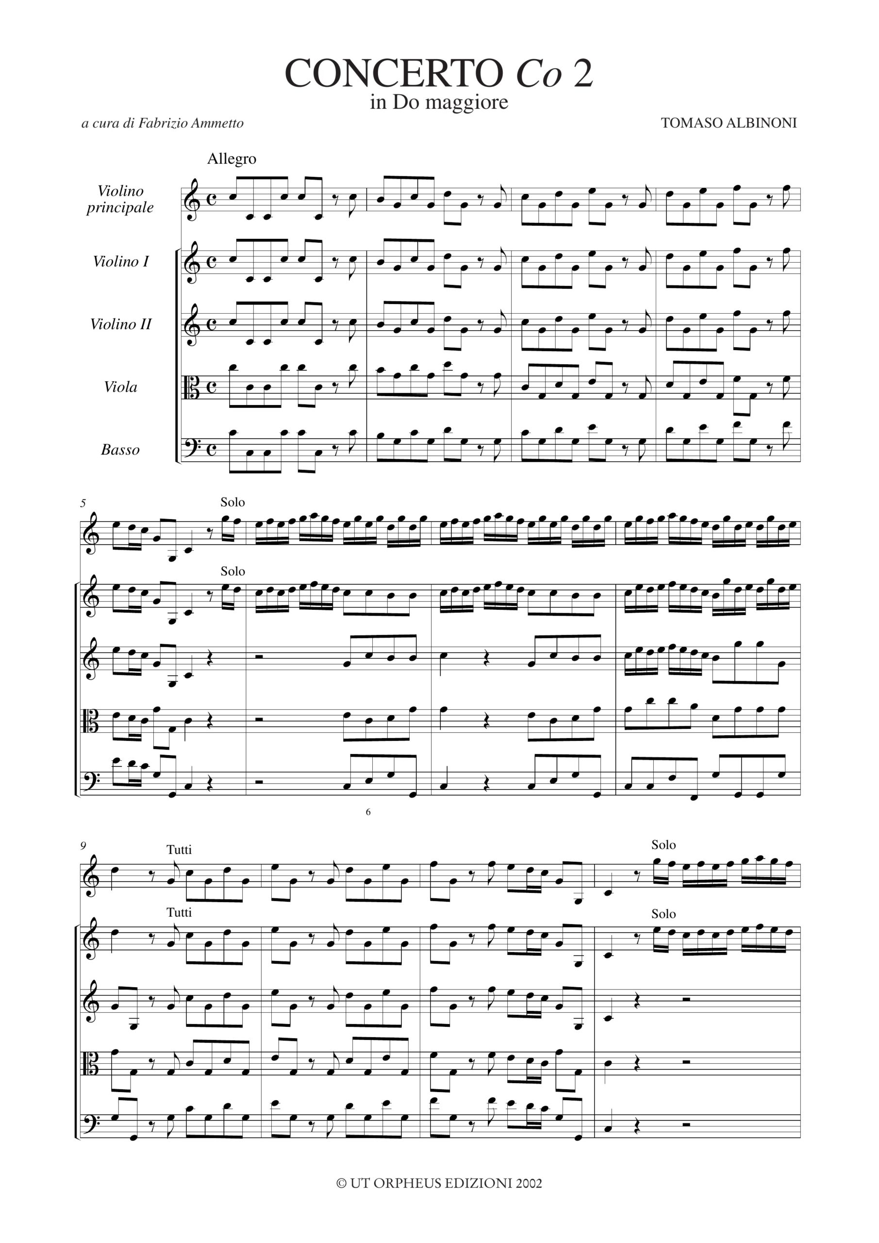 Albinoni, Tomaso: Concerti per Violino senza numero d’opus per Violino principale, 2 Violini, Viola e Basso – Vol. II: Concerto in Do maggiore, Co 2 (incluse le varianti Co 2a e Co 2b) [Partitura]