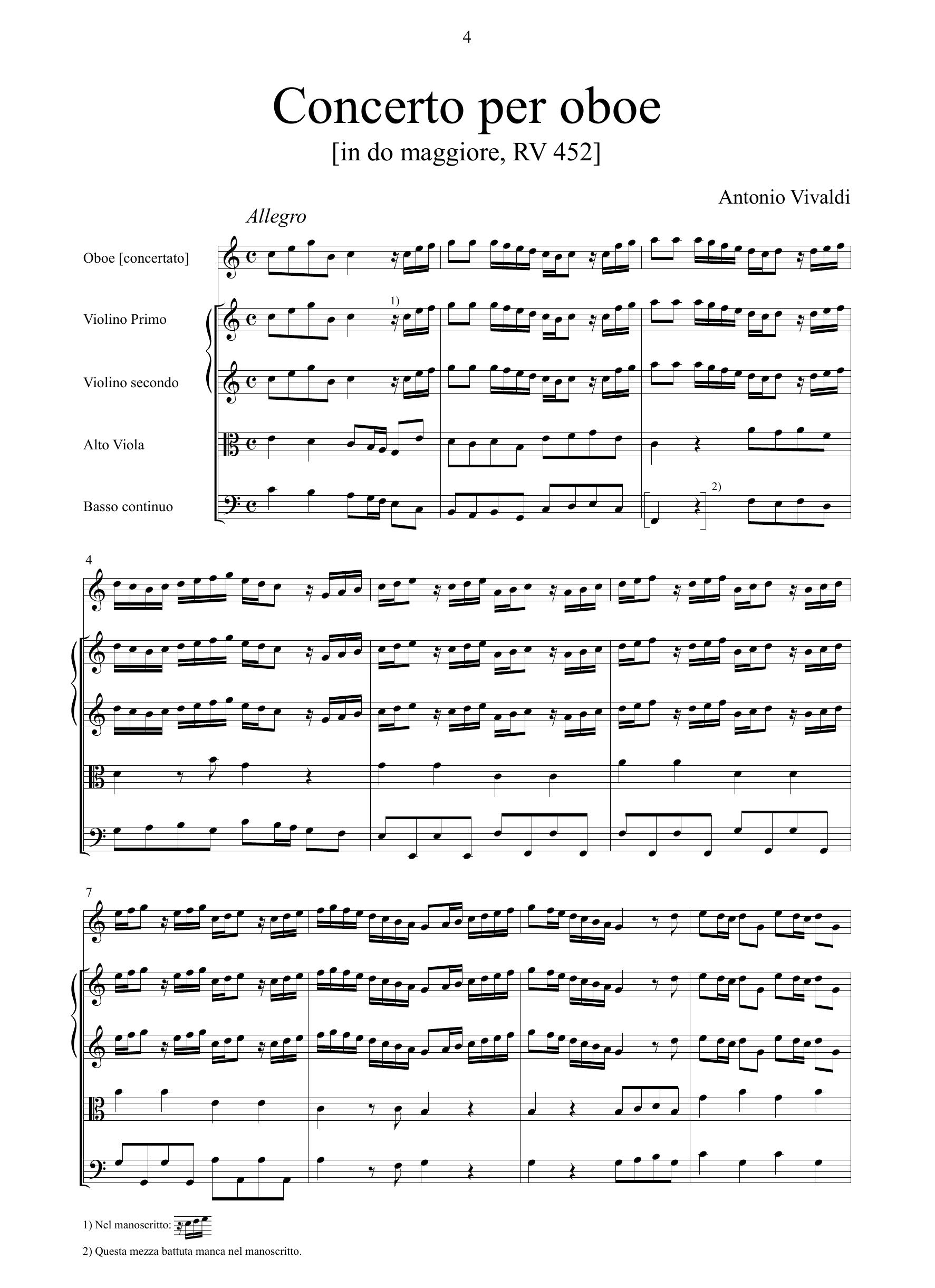 Antonio Vivaldi (1678 – 1741) – Concerto per oboe e archi in do maggiore RV 452 per oboe, archi e b.c.
