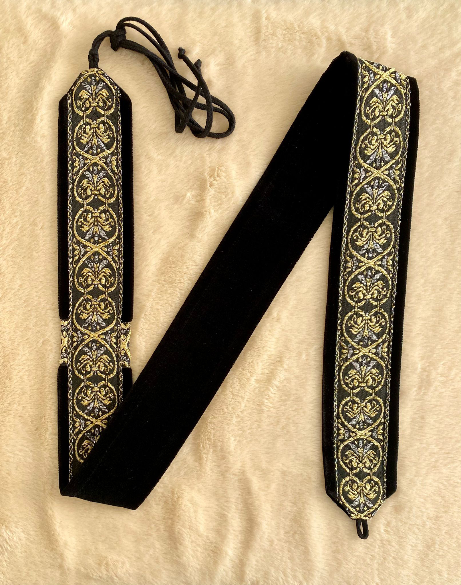 Arion Straps – for lutes, guitars / Instrumentengurt: 105-5,5-50, black – gold silver hearts on black