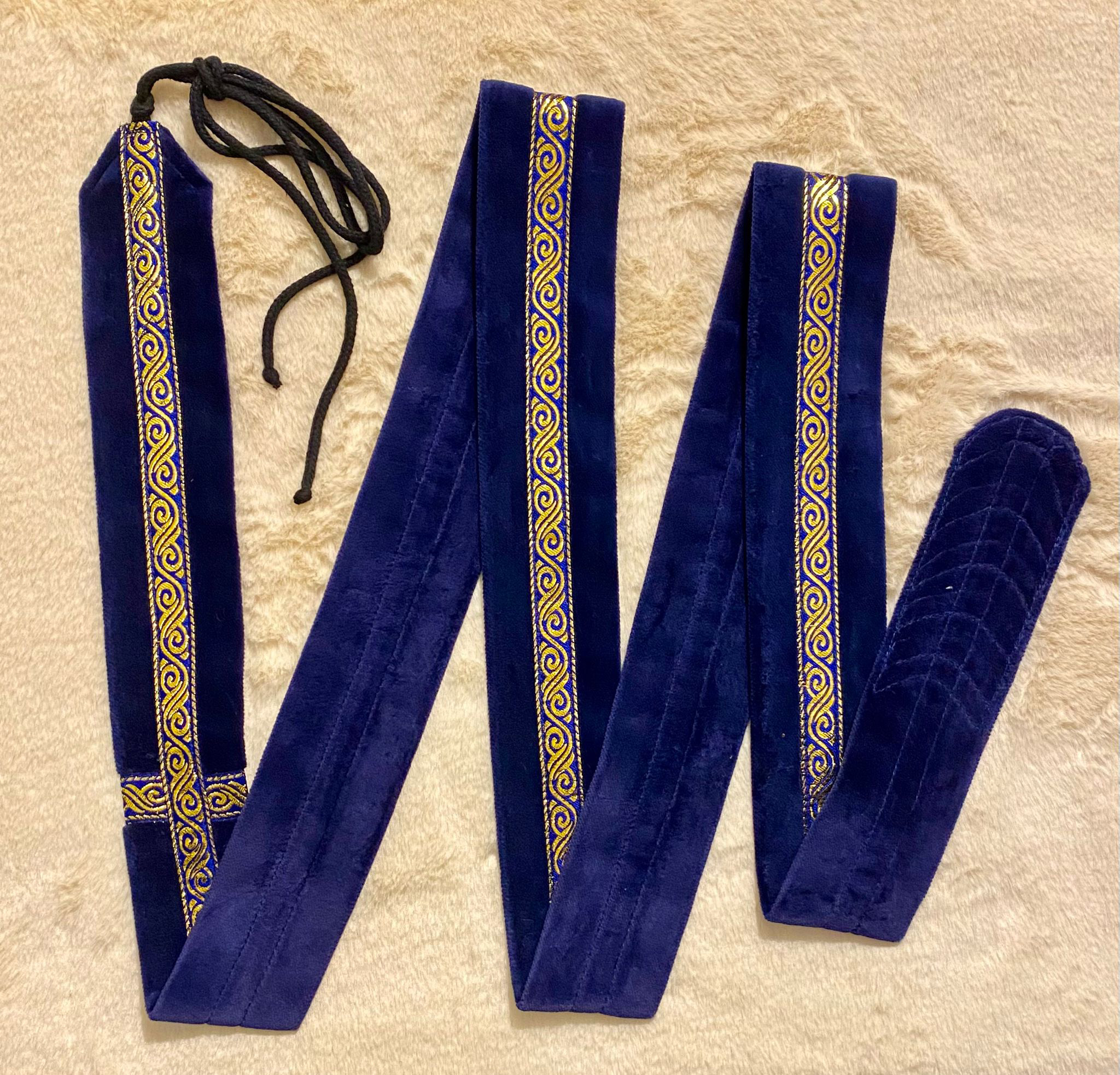 Arion Straps – for lutes, guitars / Instrumentengurt: 196 x 5,2 blue – gold spirale on intense blue