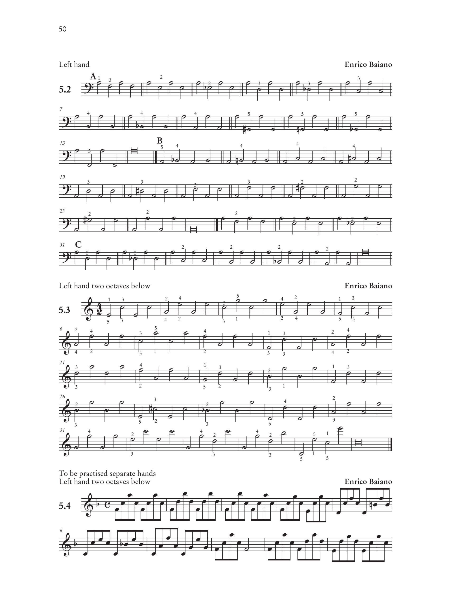 The author has also deliberately kept the section devoted to interpretation quite short: if one were to go in depth into all the problems concerned with style and expression (and could one ever cover them all?), this would require a massive volume all to itself. Besides, the danger is always for a written text to turn into dogma, laying down sterile rules which cannot possibly encompass all the infinite variables that crop up in musical discourse. Music has to be made; it can only be explained up to a point. Thus Baiano has chosen to restrict himself to a few words of advice, just to start the performer off, aware that whatever he says will have its limits in practice. He remains convinced that personal experience and work alongside a teacher are immeasurably more fruitful.