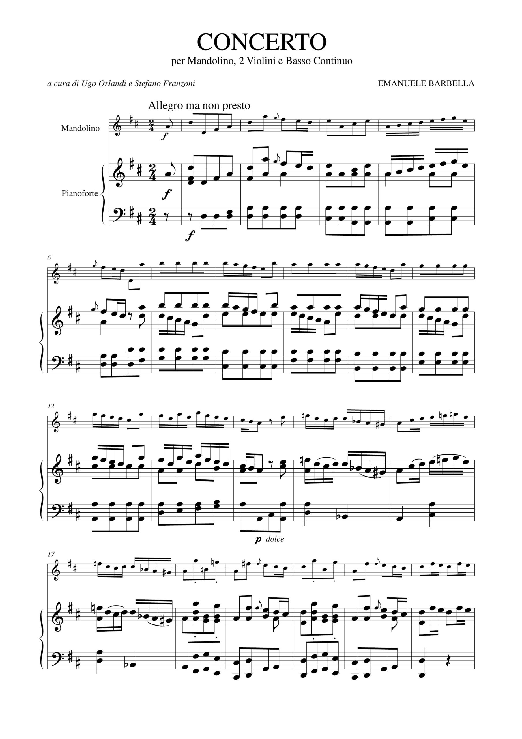 Barbella, Emanuele: Concerto in Re maggiore per Mandolino, Archi e Basso Continuo [Riduzione Mandolino e Pianoforte]