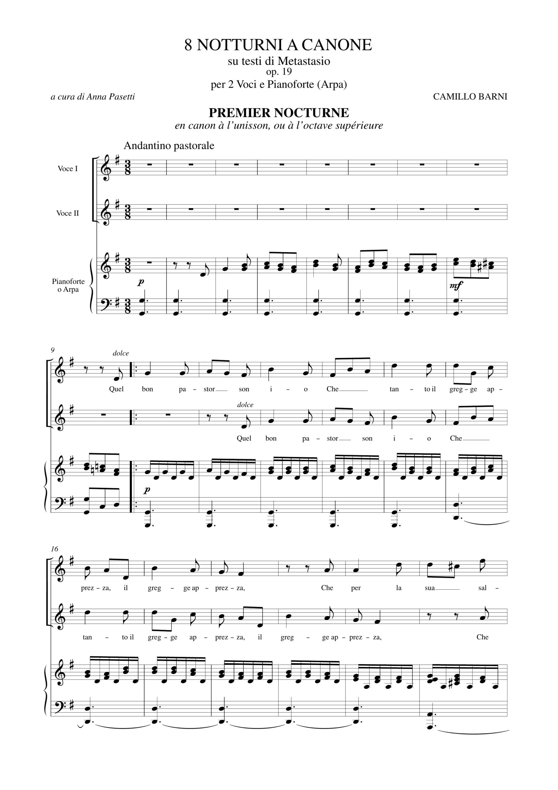 Barni, Camillo: 8 Notturni a Canone su testi di Metastasio Op. 19 per 2 Voci e Pianoforte (Arpa)