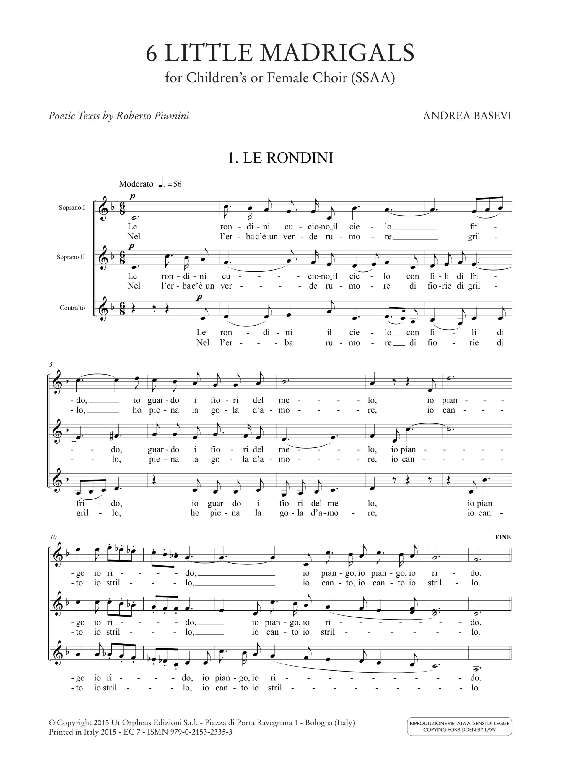 Basevi, Andrea: 6 piccoli Madrigali per Coro di voci bianche o Coro femminile (SSAA)