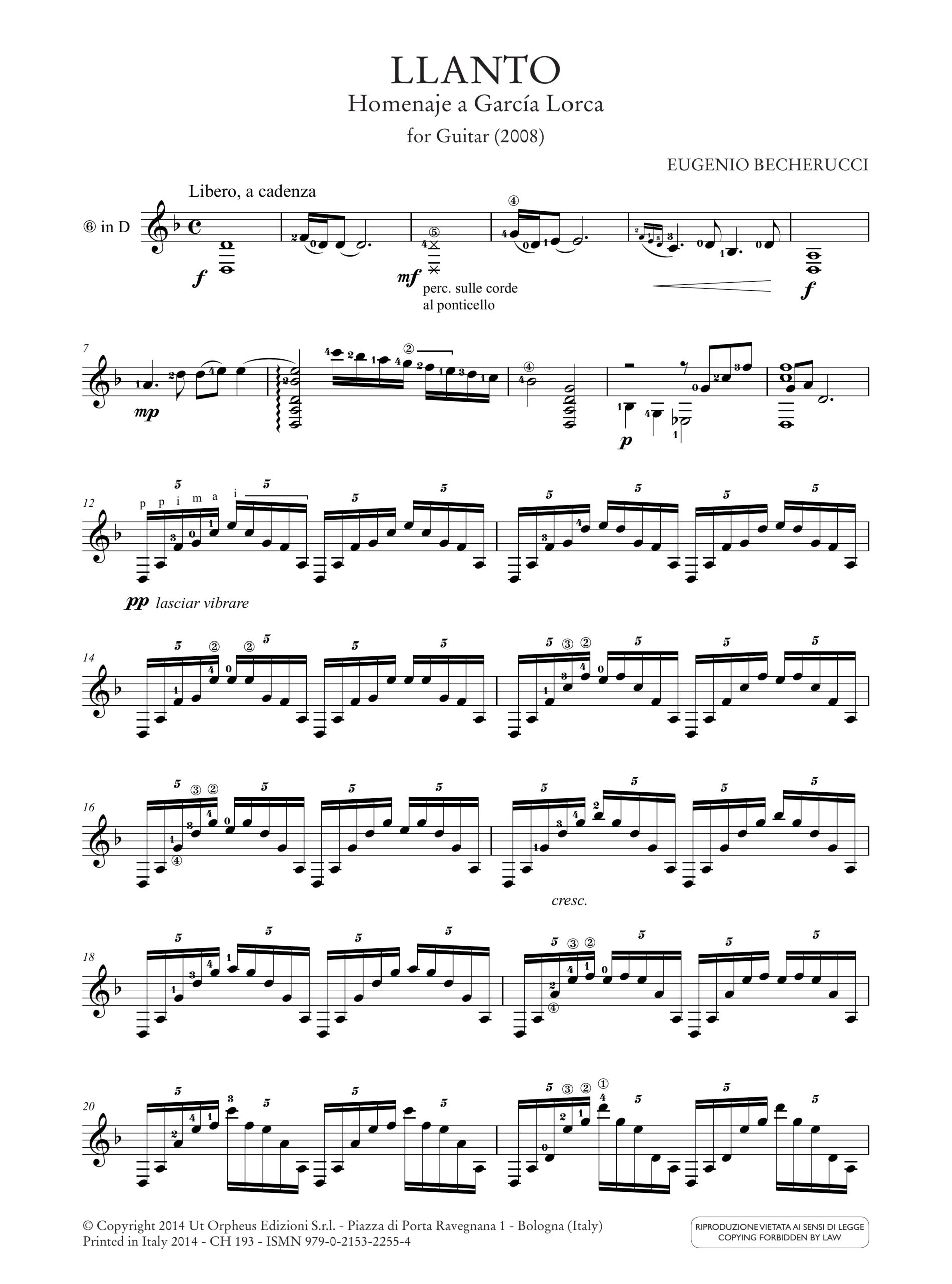 Becherucci, Eugenio: Llanto. Homenaje a García Lorca per Chitarra (2008)