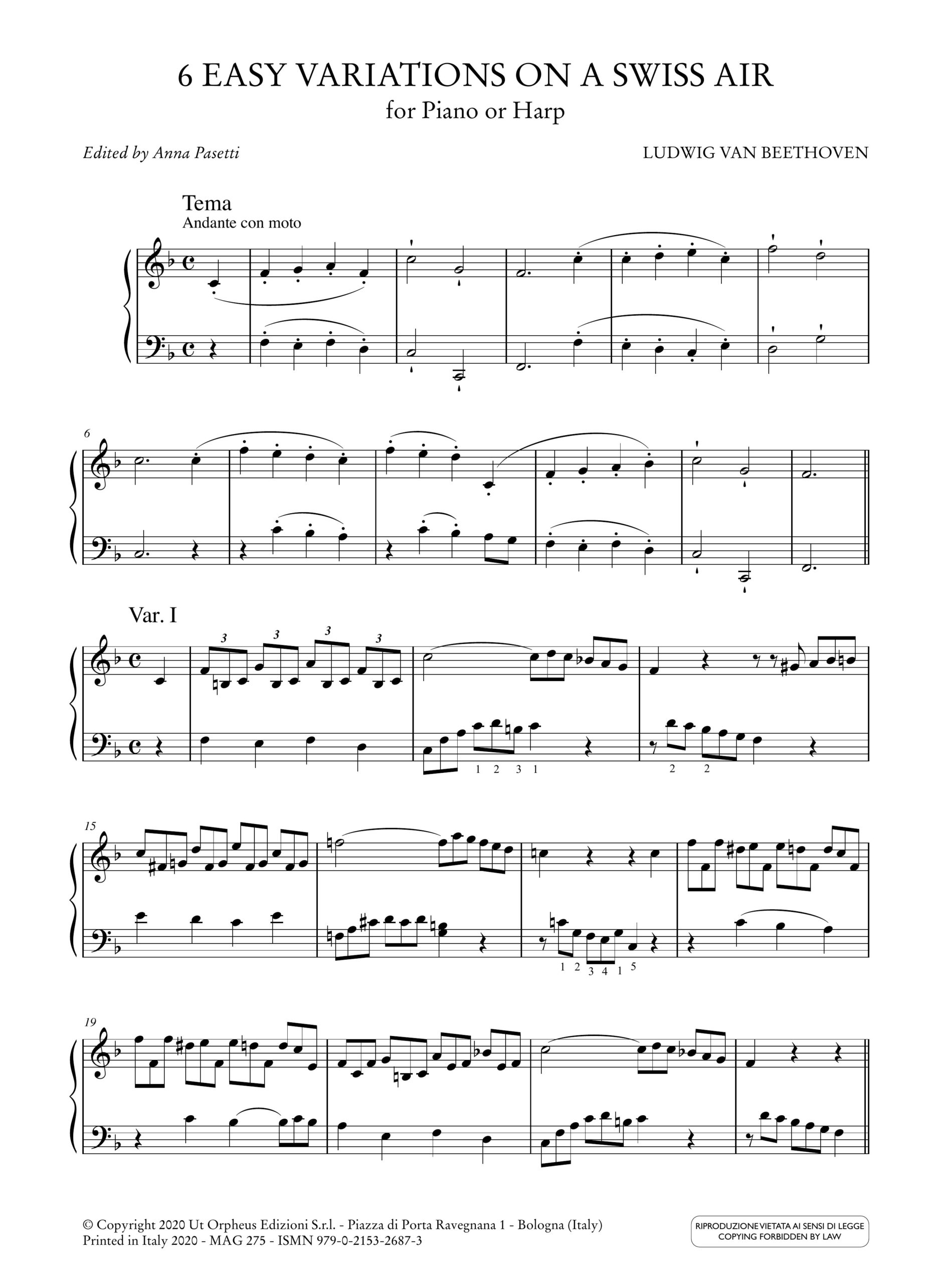 Beethoven, Ludwig van: 6 Variazioni facili sopra un’Aria svizzera per Pianoforte o Arpa