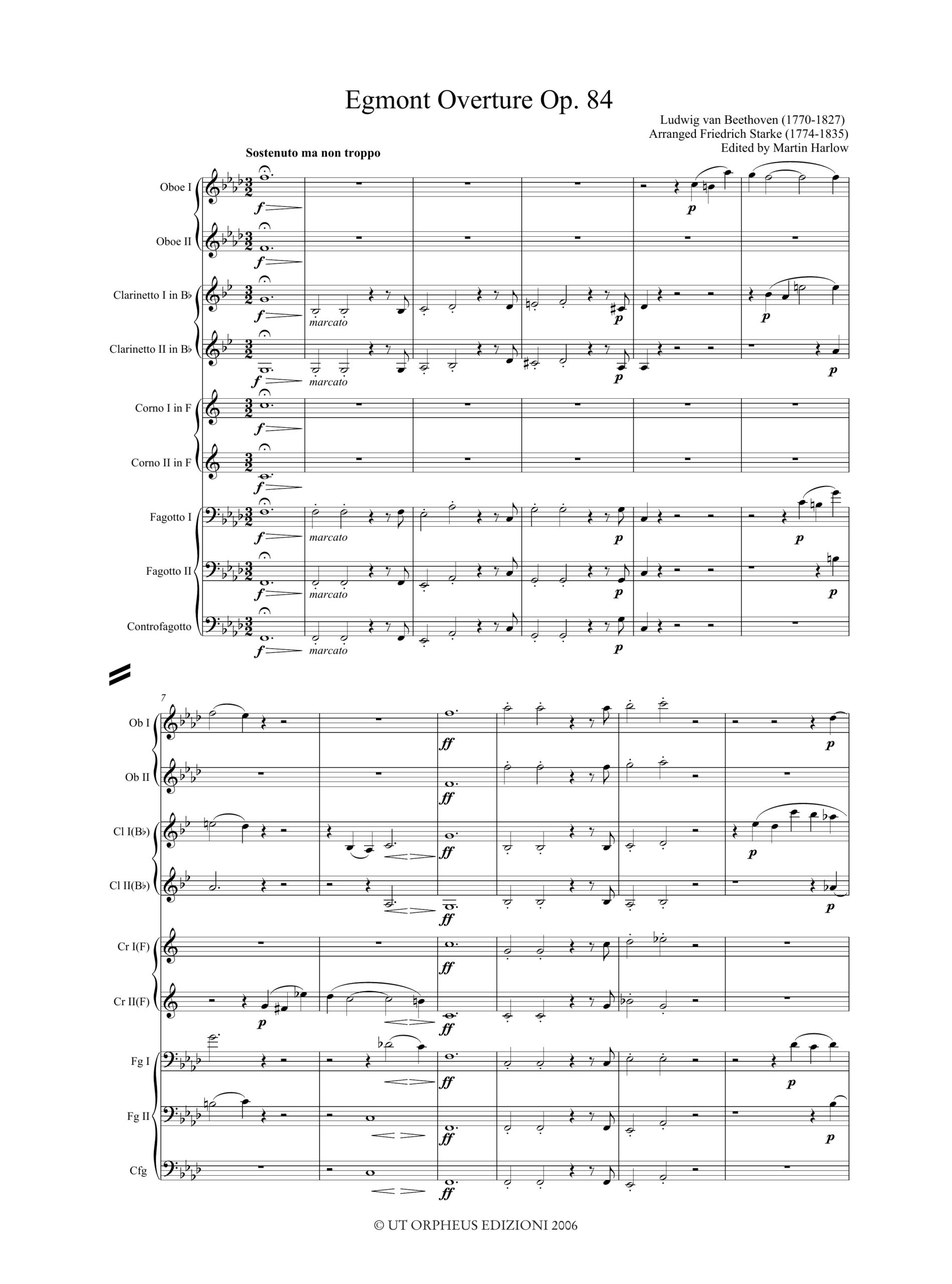 Beethoven, Ludwig van: Egmont. Ouverture Op. 84 (trascr. Friedrich Starke – Wien 1812) per 2 Oboi, 2 Clarinetti, 2 Corni, 2 Fagotti e Controfagotto [Partitura]