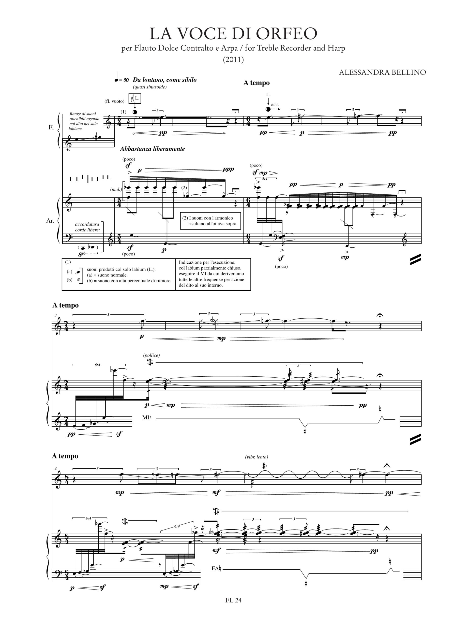 Bellino, Alessandra: La Voce di Orfeo per Flauto Dolce Contralto e Arpa (2011)