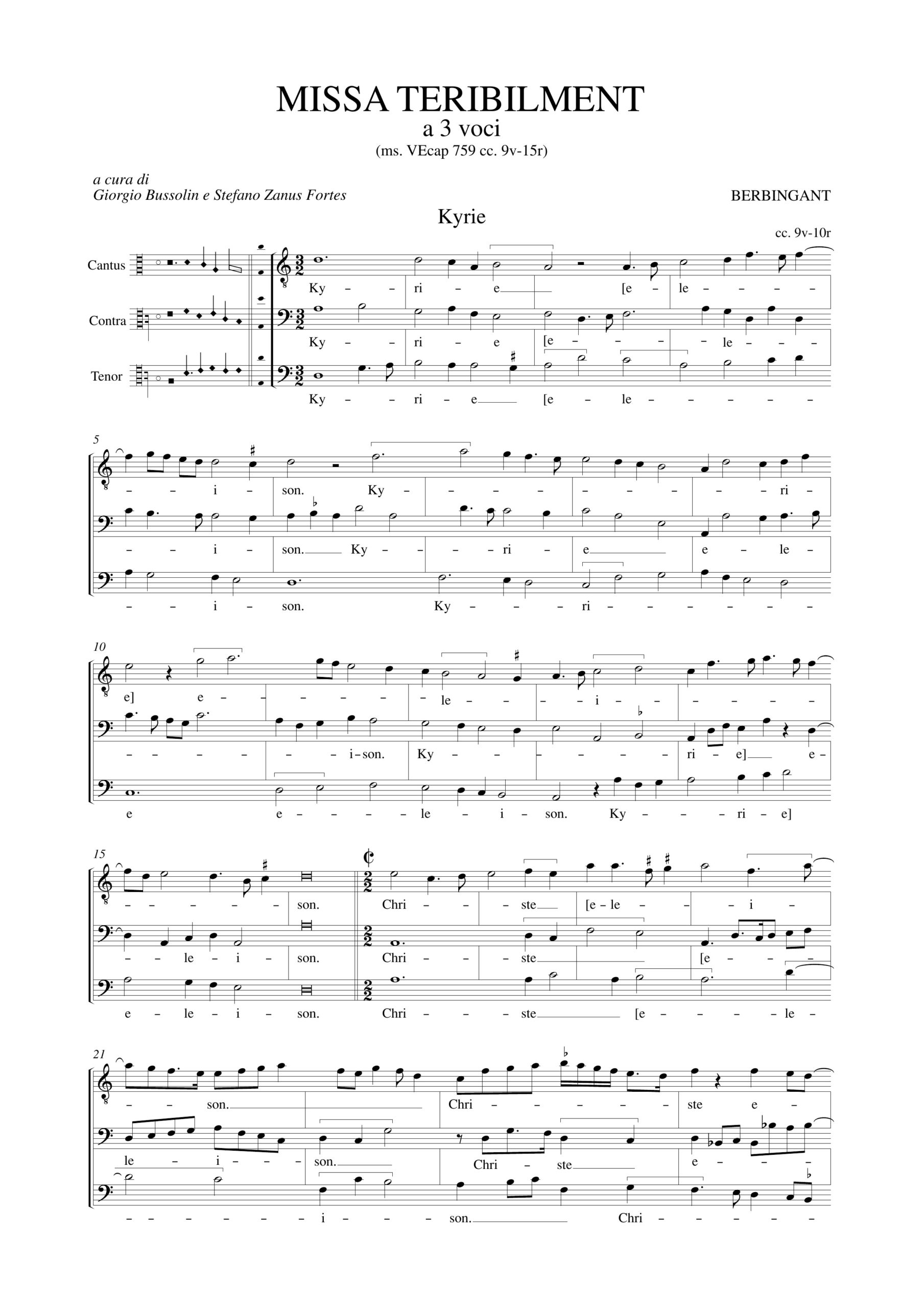 Berbingant: Missa Teribilment a 3 voci [Partitura]