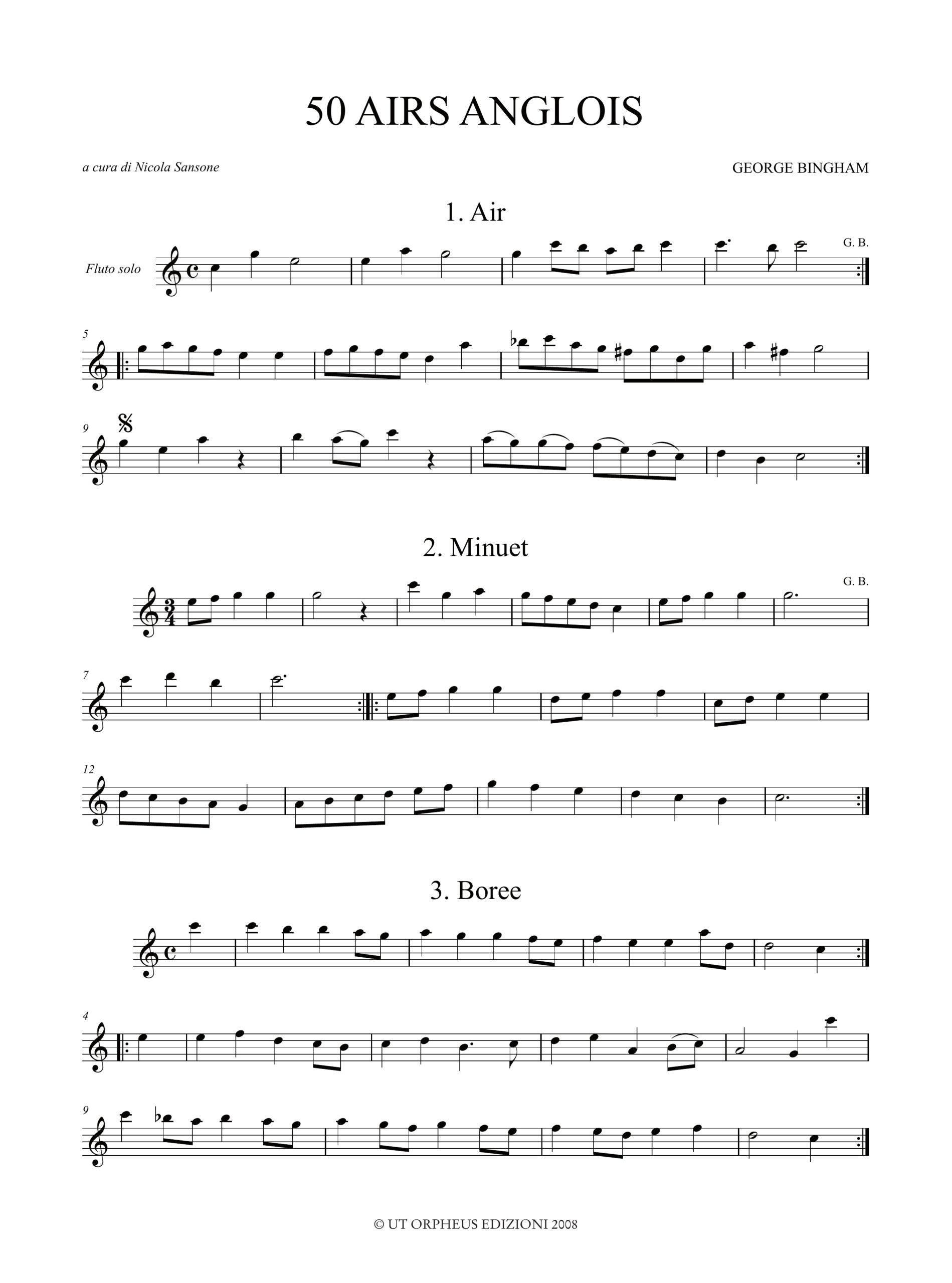 Bingham, George: 50 Airs Anglois per Flauto Dolce Contralto solo (Nn. 1-20), 2 Flauti Dolci Contralti (Nn. 21-30), Flauto Dolce Contralto e Basso Continuo (Nn. 31-50)