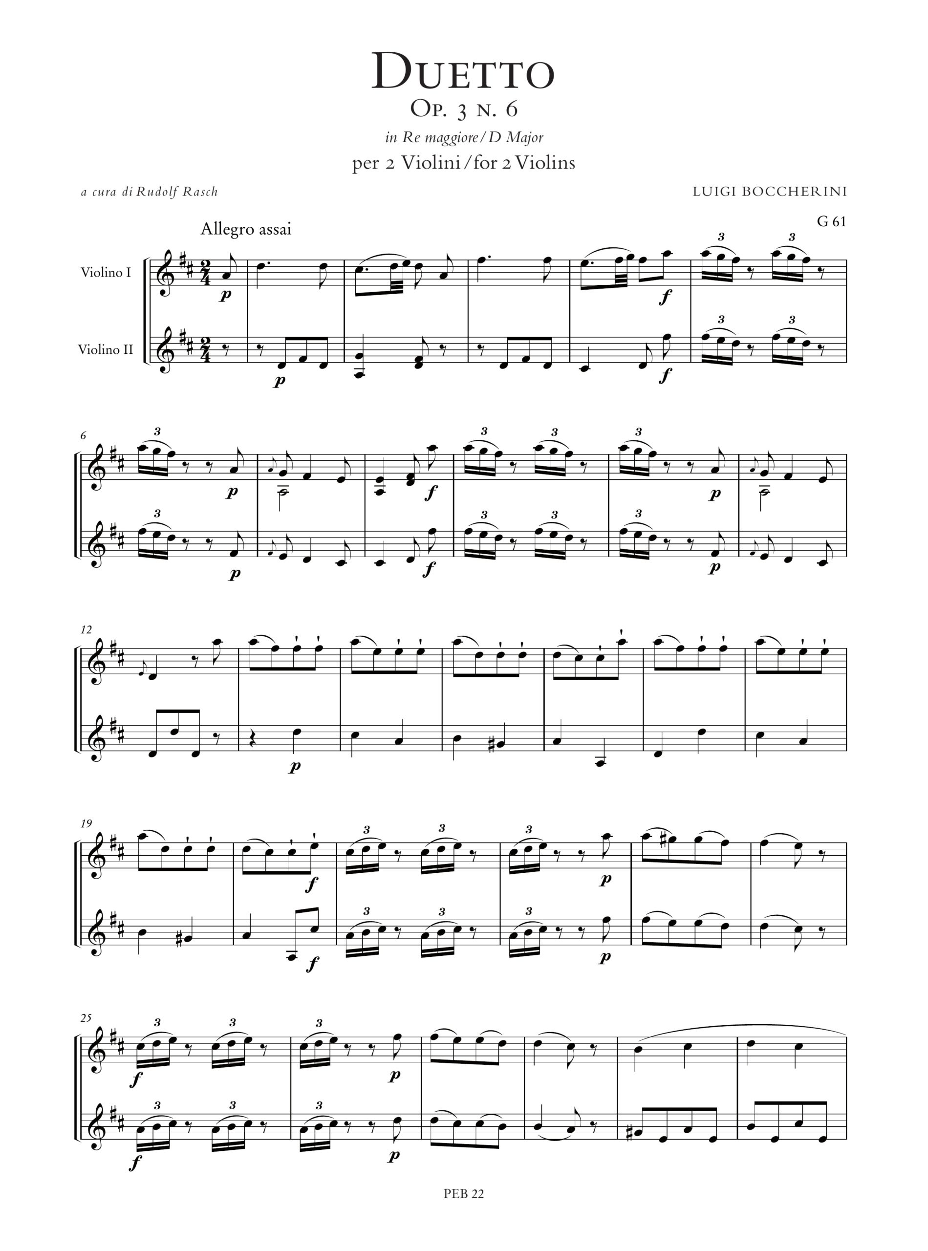 Boccherini, Luigi: Duetto Op. 3 N. 6 (G 61) in Re maggiore per 2 Violini