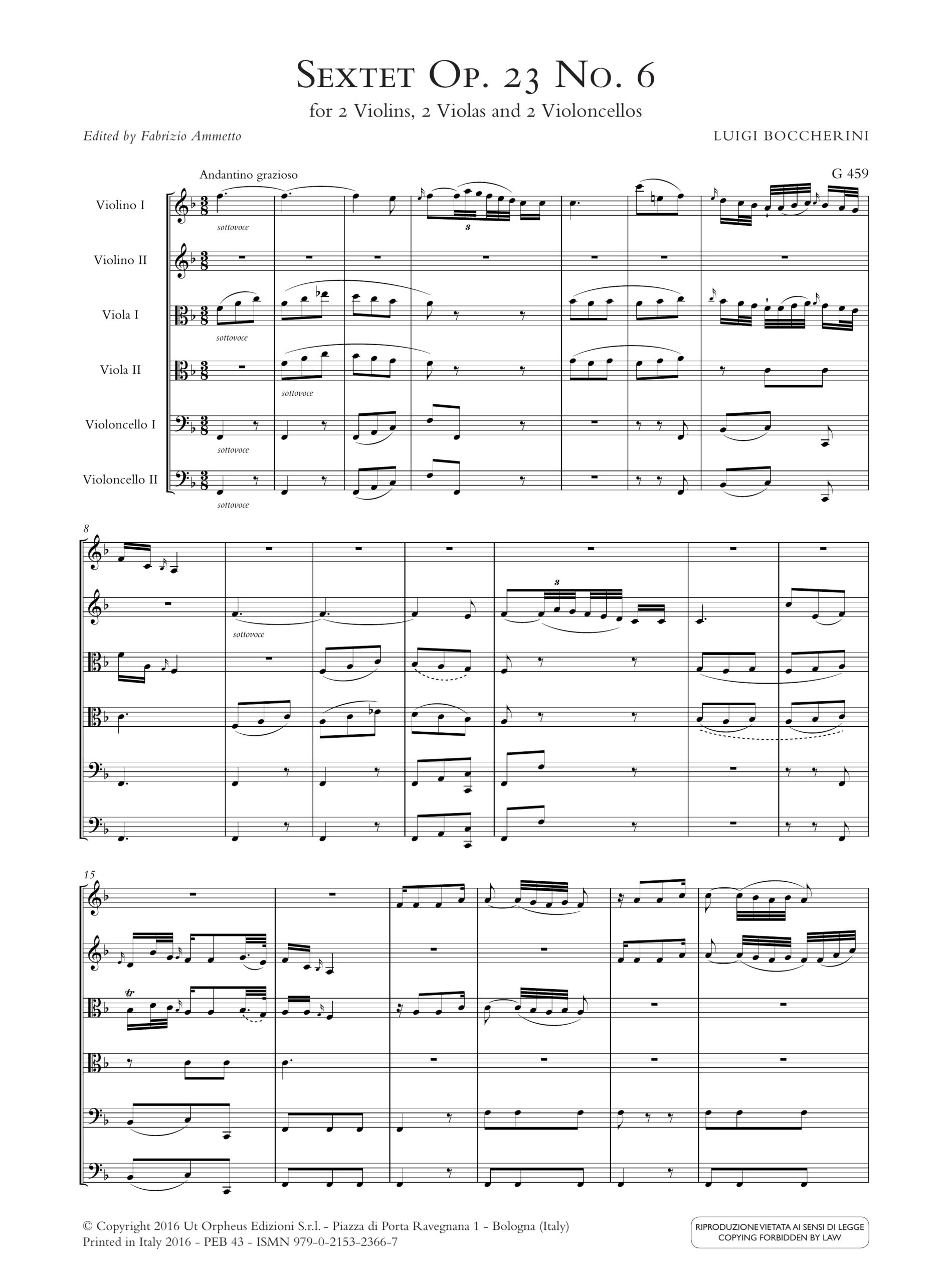 Boccherini, Luigi: Sestetto op. 23 n. 6 in Fa maggiore (G 459) per 2 Violini, 2 Viole e 2 Violoncelli