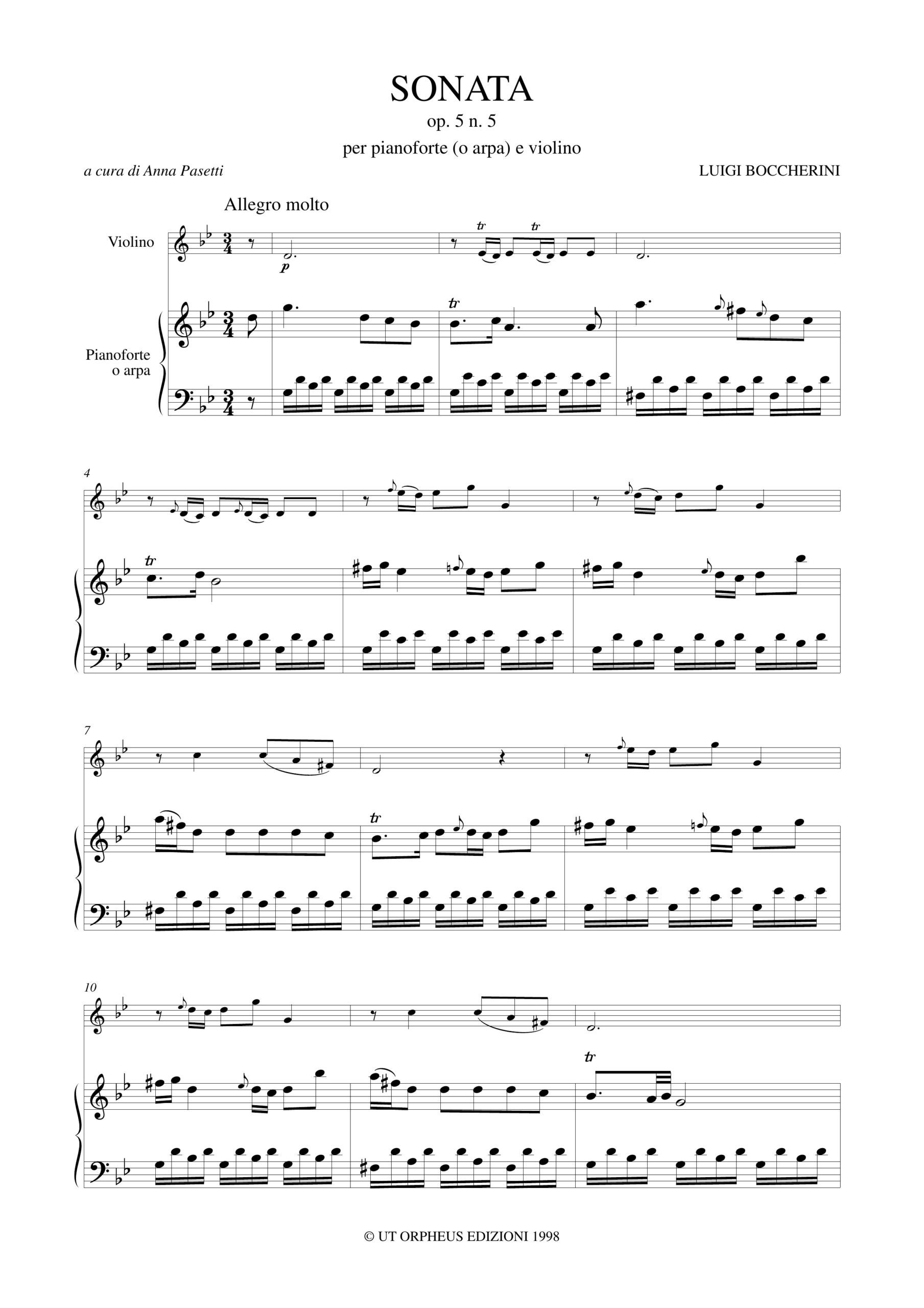 Boccherini, Luigi: Sonata Op. 5 N. 5 per Pianoforte (Arpa) e Violino