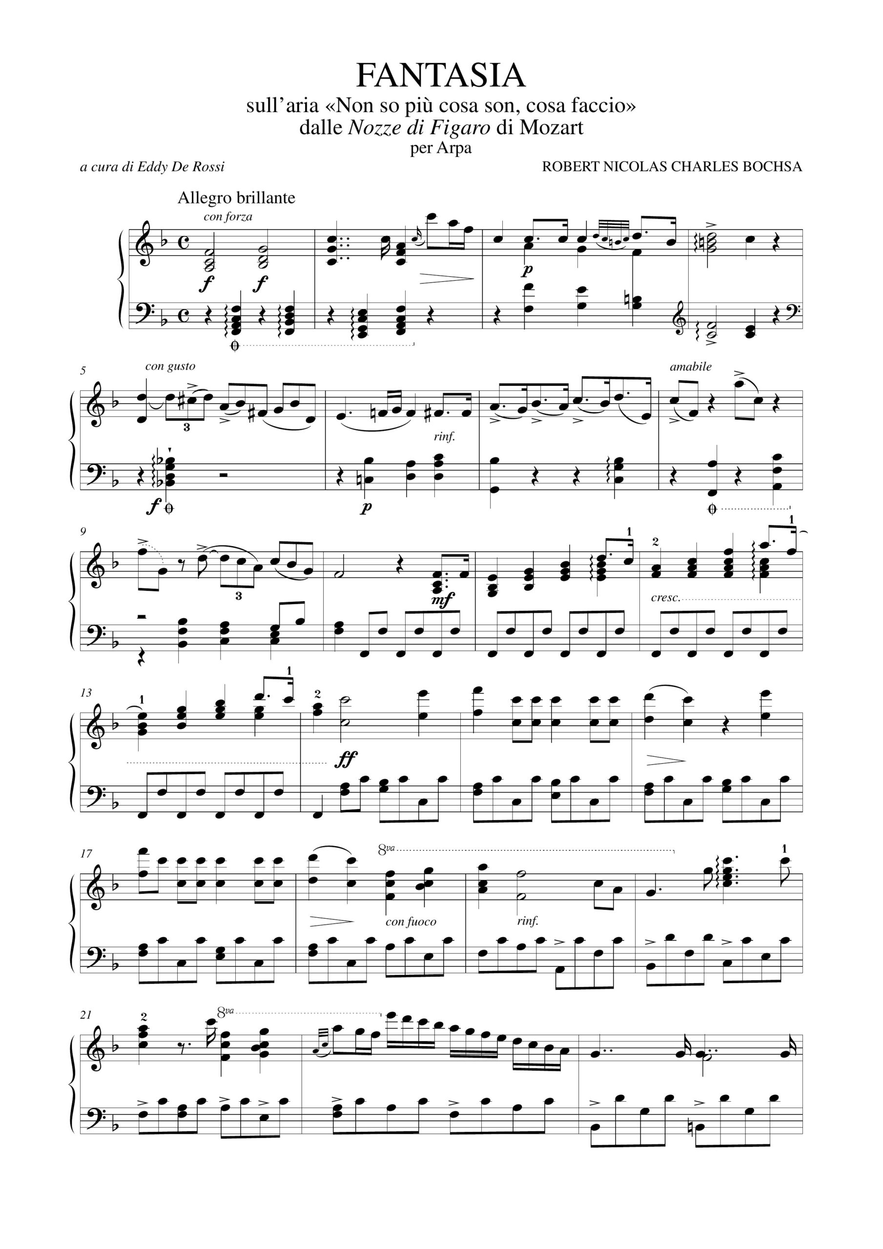 Bochsa, Robert Nicolas Charles: Fantasia sull’aria “Non so più cosa son, cosa faccio” dalle “Nozze di Figaro” di Mozart per Arpa