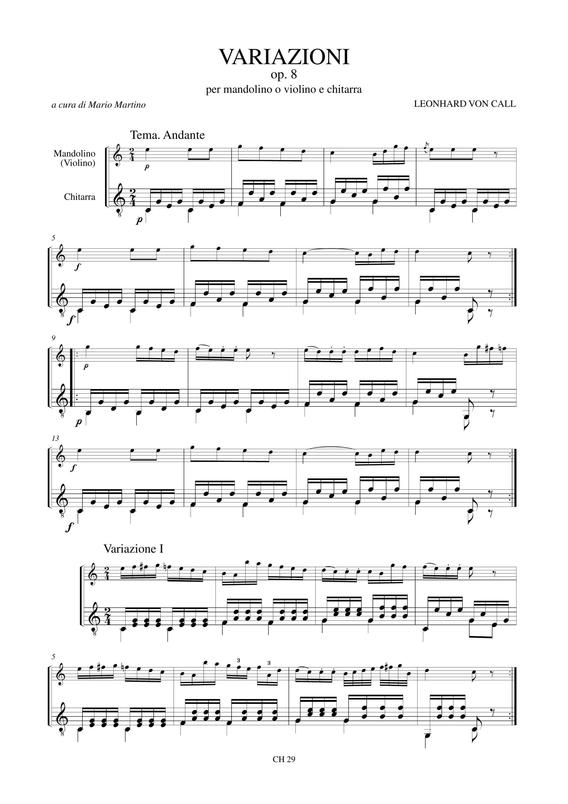 Call, Leonhard von: Variazioni Op. 8 per Mandolino (Violino) e Chitarra