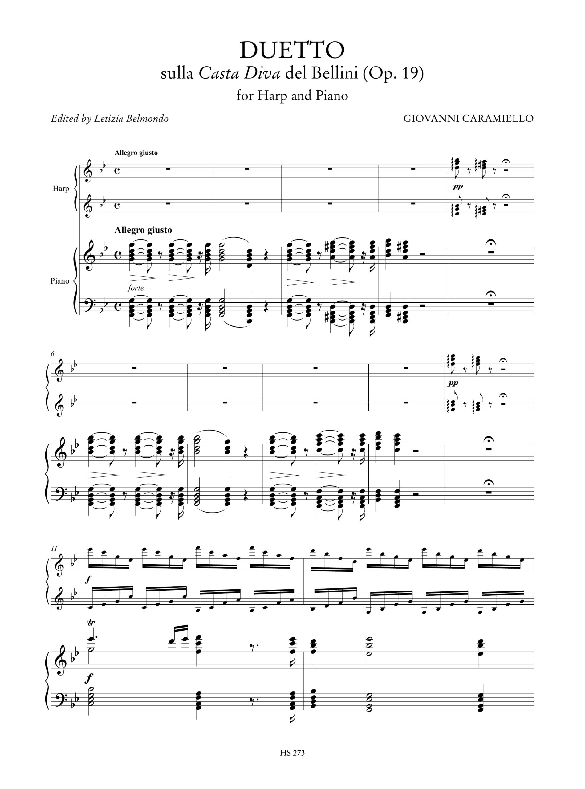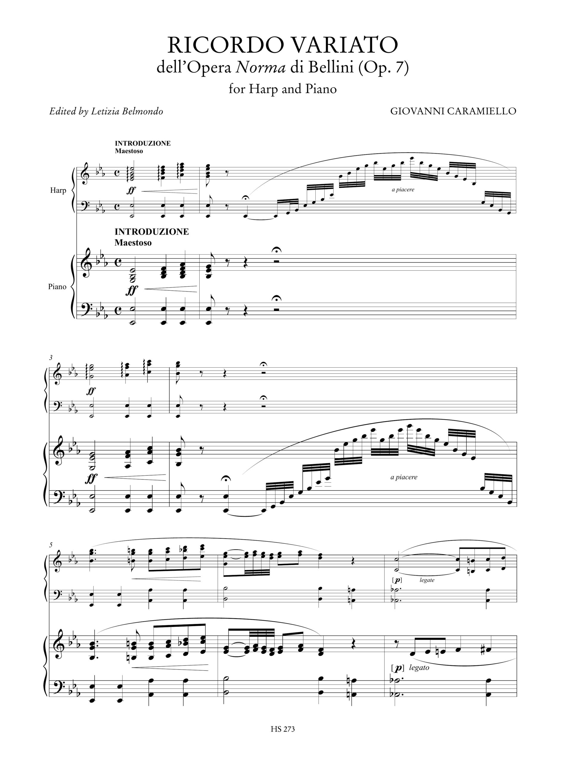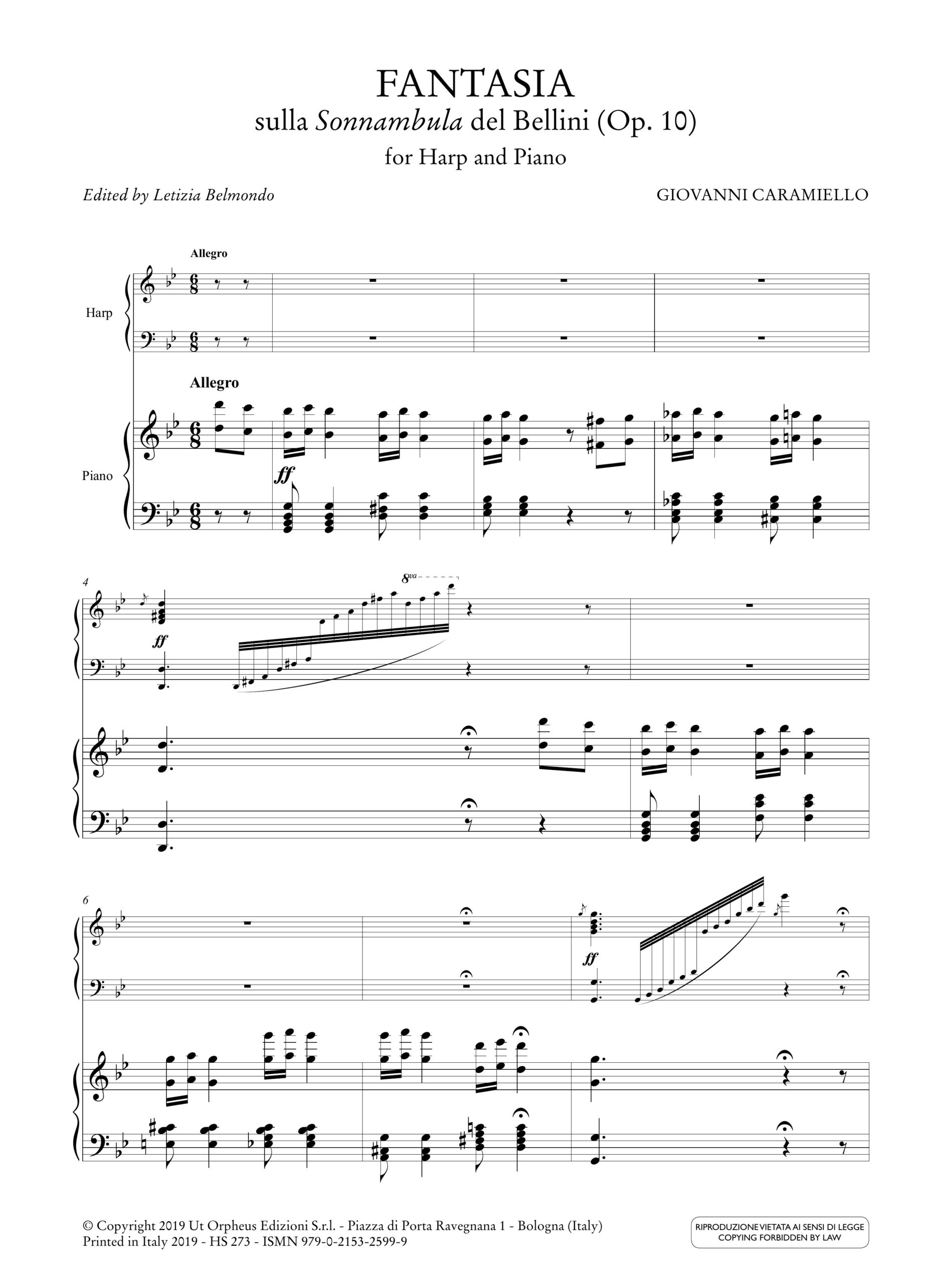 Caramiello, Giovanni: 3 Fantasie su temi di Bellini per Arpa e Pianoforte