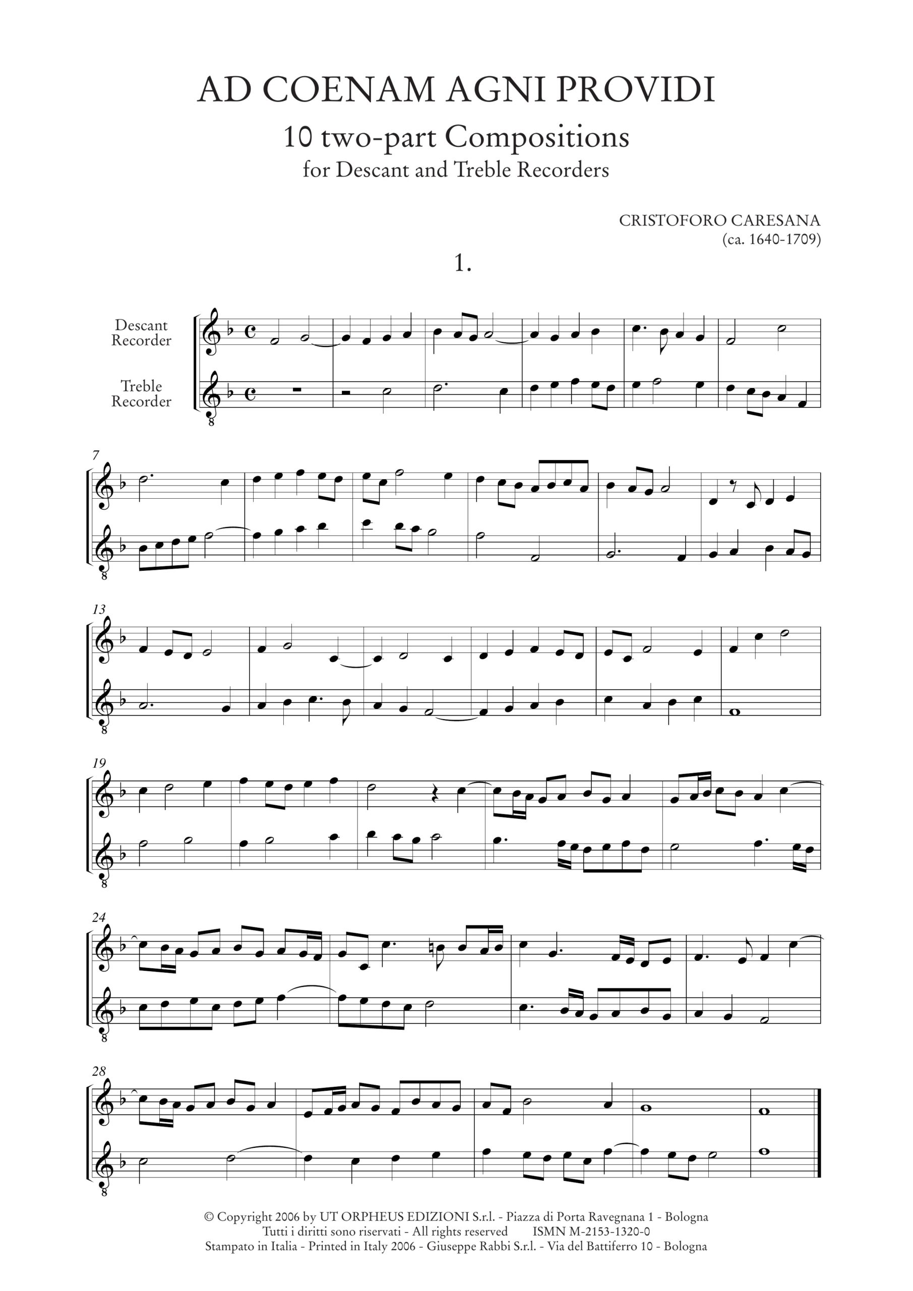 Caresana, Cristoforo: Ad coenam agni providi. 10 Composizioni a 2 voci per Flauto Dolce Soprano e Contralto