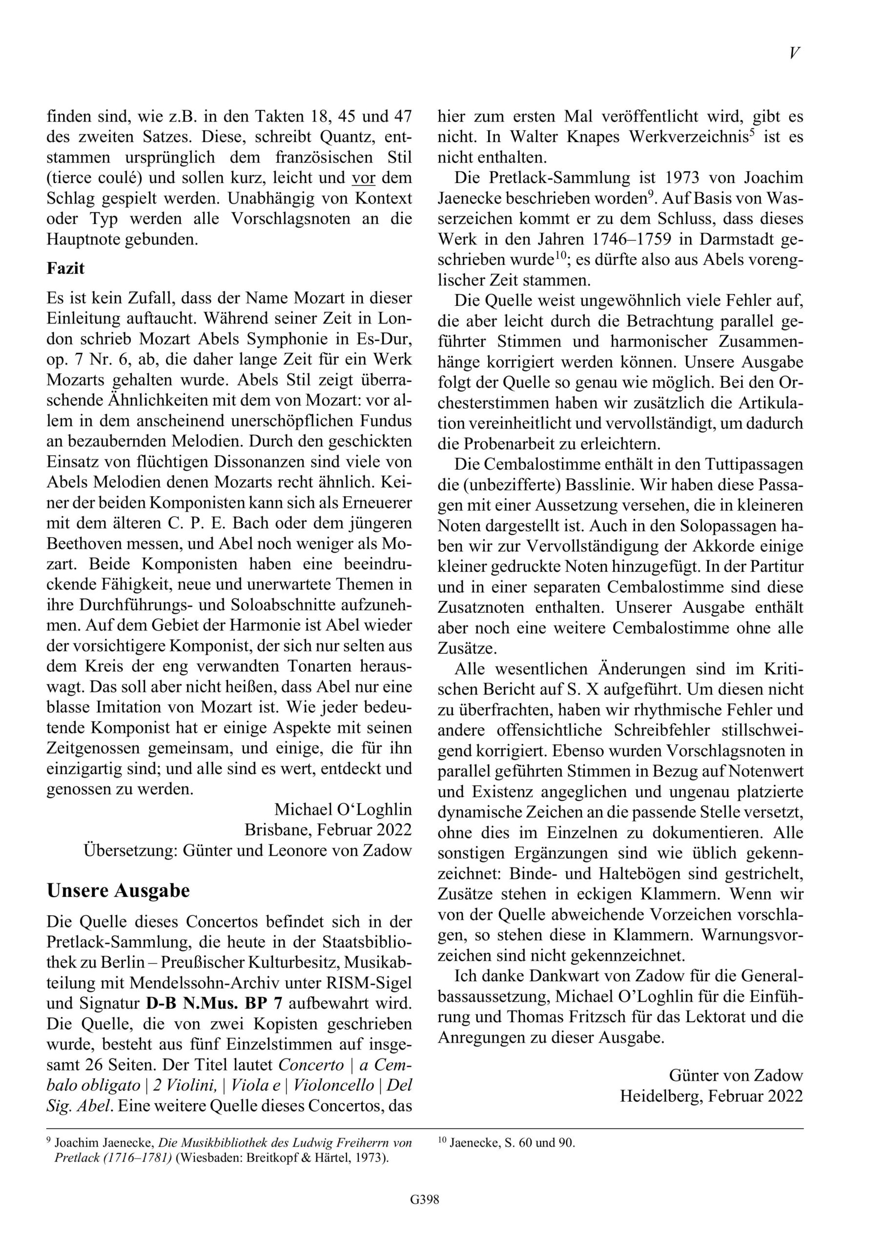 Carl Friedrich Abel, Concerto D-Dur a Cembalo obligato, AbelWV F7, Erstausgabe, Cemb+Str, Partitur und Stimmen, 104 S., ISMN 979-0-50174-398-8