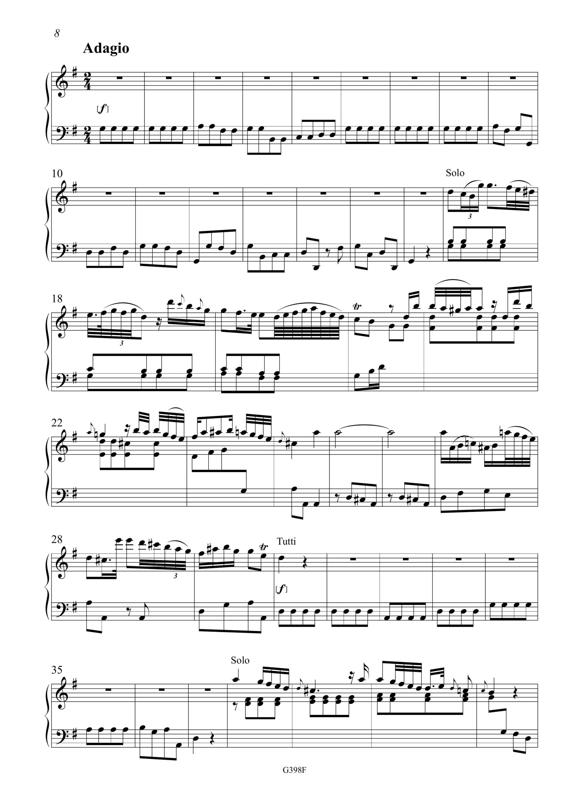sich mit Soloabschnitten ab. Das Cembalo, das in den Tuttipassagen
