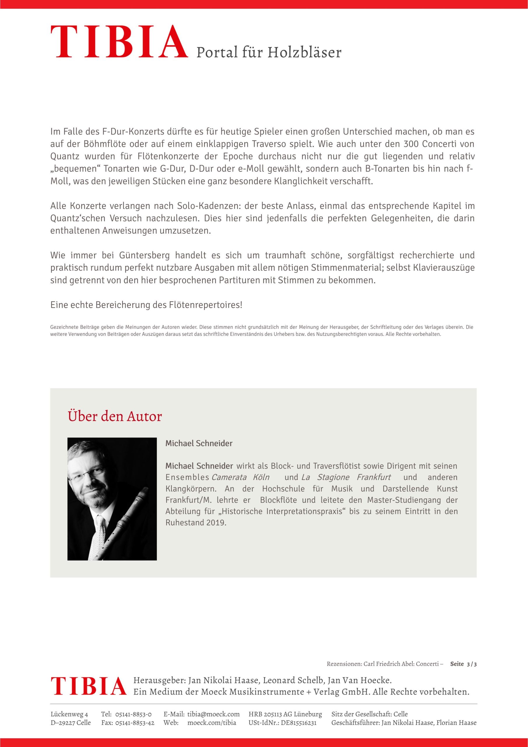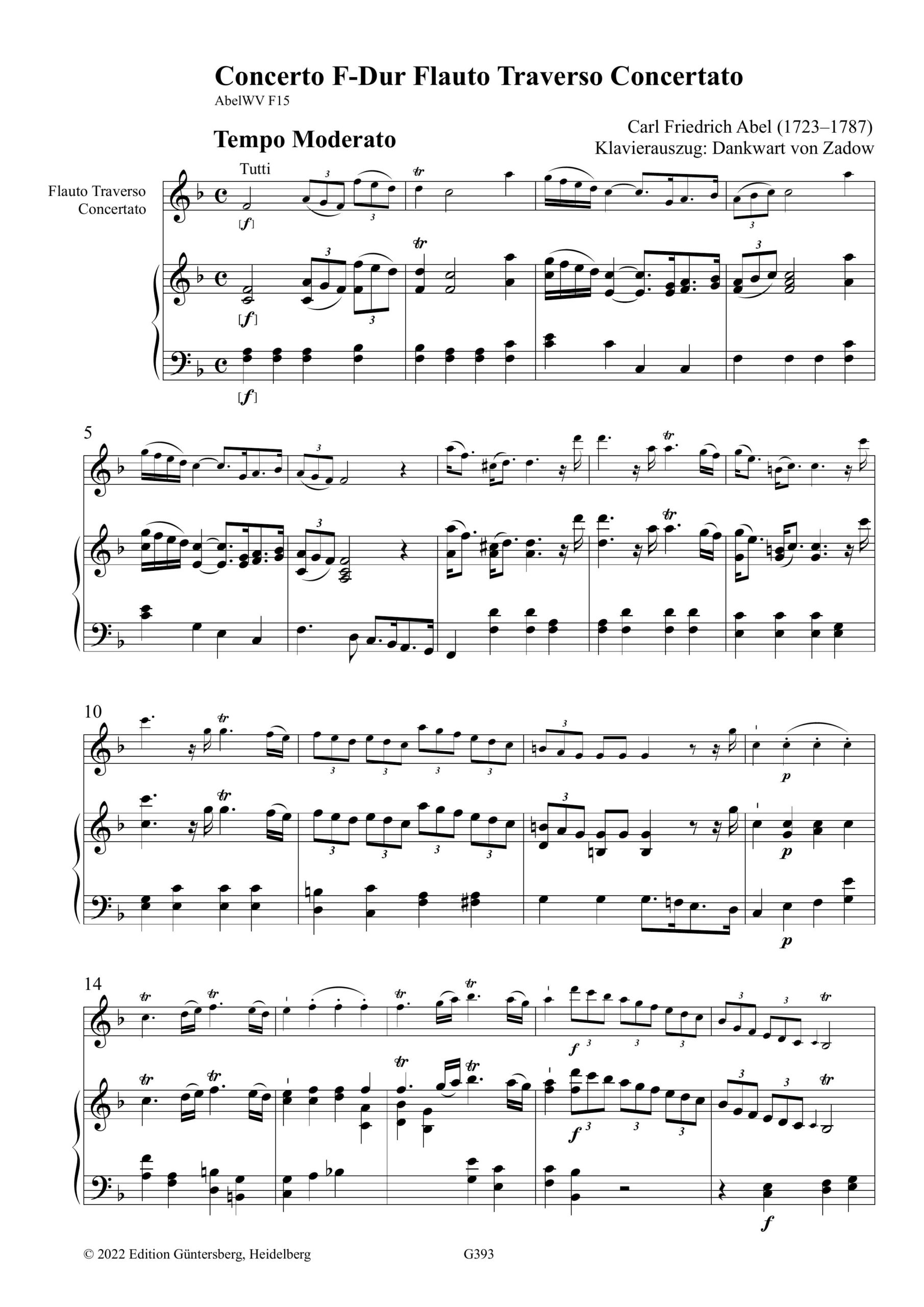 Carl Friedrich Abel, Concerto F-Dur Flauto Traverso Concertato, AbelWV F15, Klavierauszug und Flötenstimme, Erstausgabe, Fl+Piano, 28 S., ISMN 979-0-50174-393-3