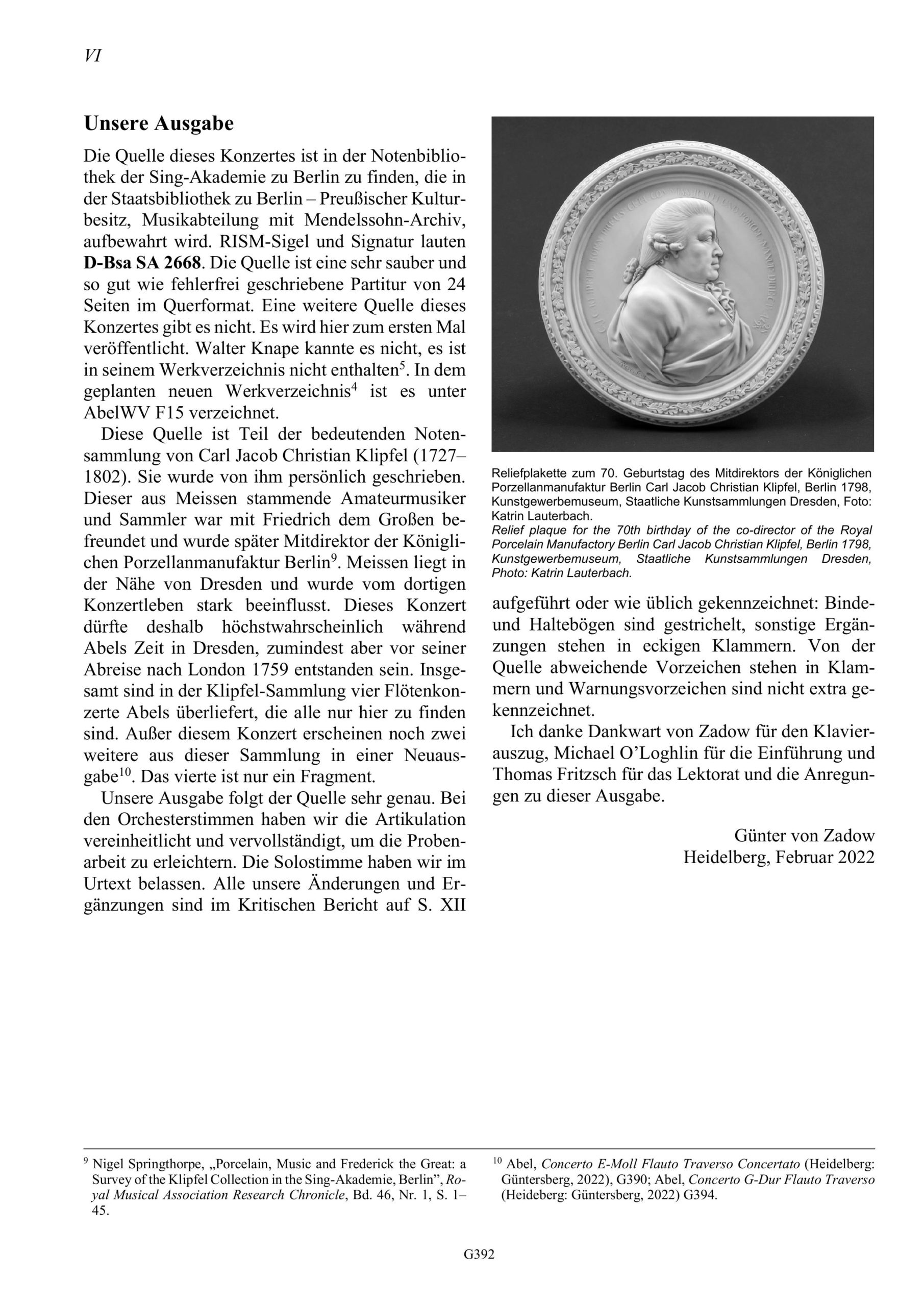 Carl Friedrich Abel, Concerto F-Dur Flauto Traverso Concertato, AbelWV F15, Partitur mit Einführung und Stimmen, Erstausgabe, Fl+Str, 72 S., ISMN 979-0-50174-392-6