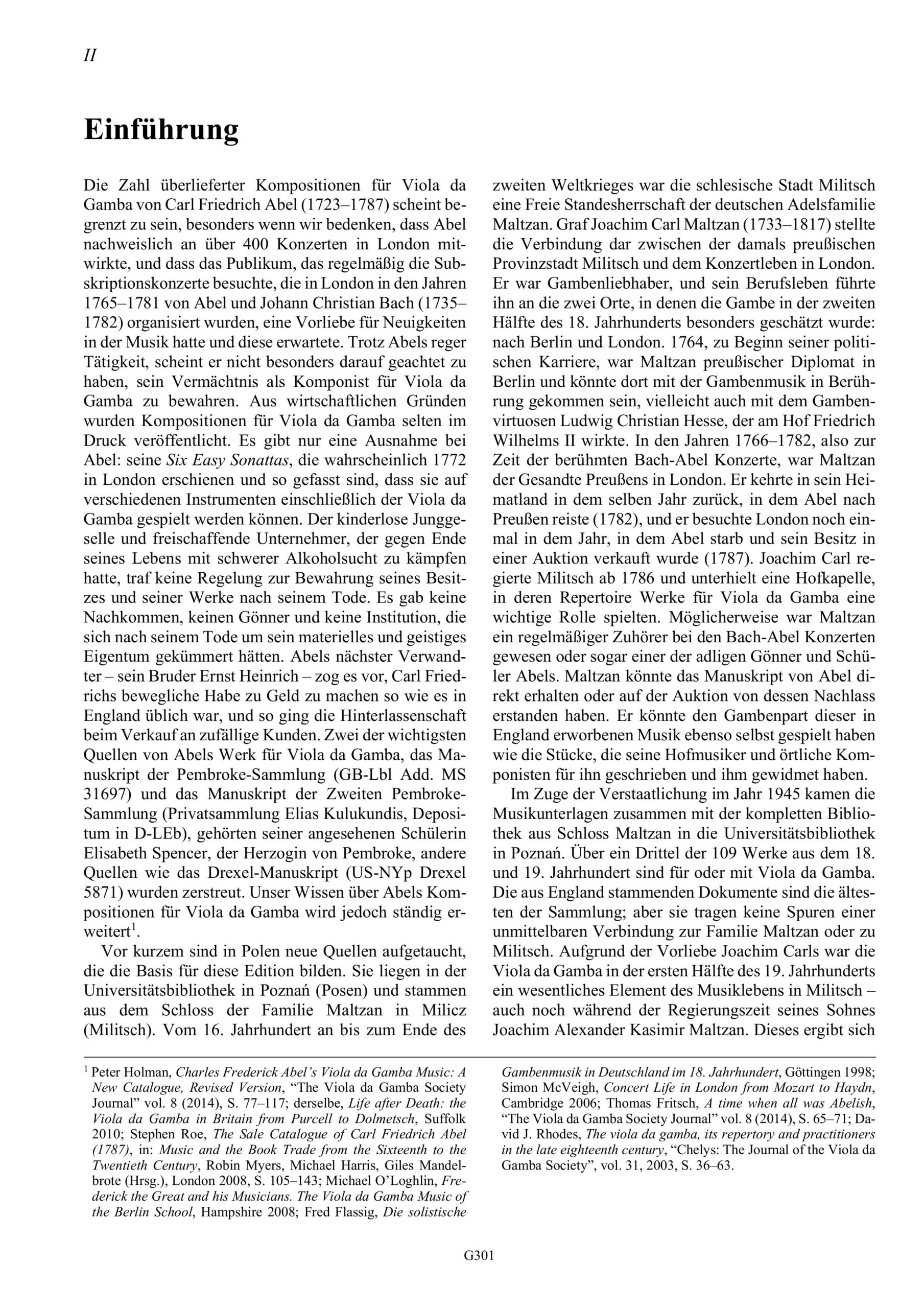 Abel, Maltzan-Sammlung, AbelWV B91–93 (A2:55A–57A), Band 2, Drei Sonaten (C-Moll, G-Moll, A-Moll), Erstausgabe, VdG+Bc, Partitur und 3 Stimmen (Violin- und Altschlüssel), 68 S., ISMN 979-0-50174-302-5