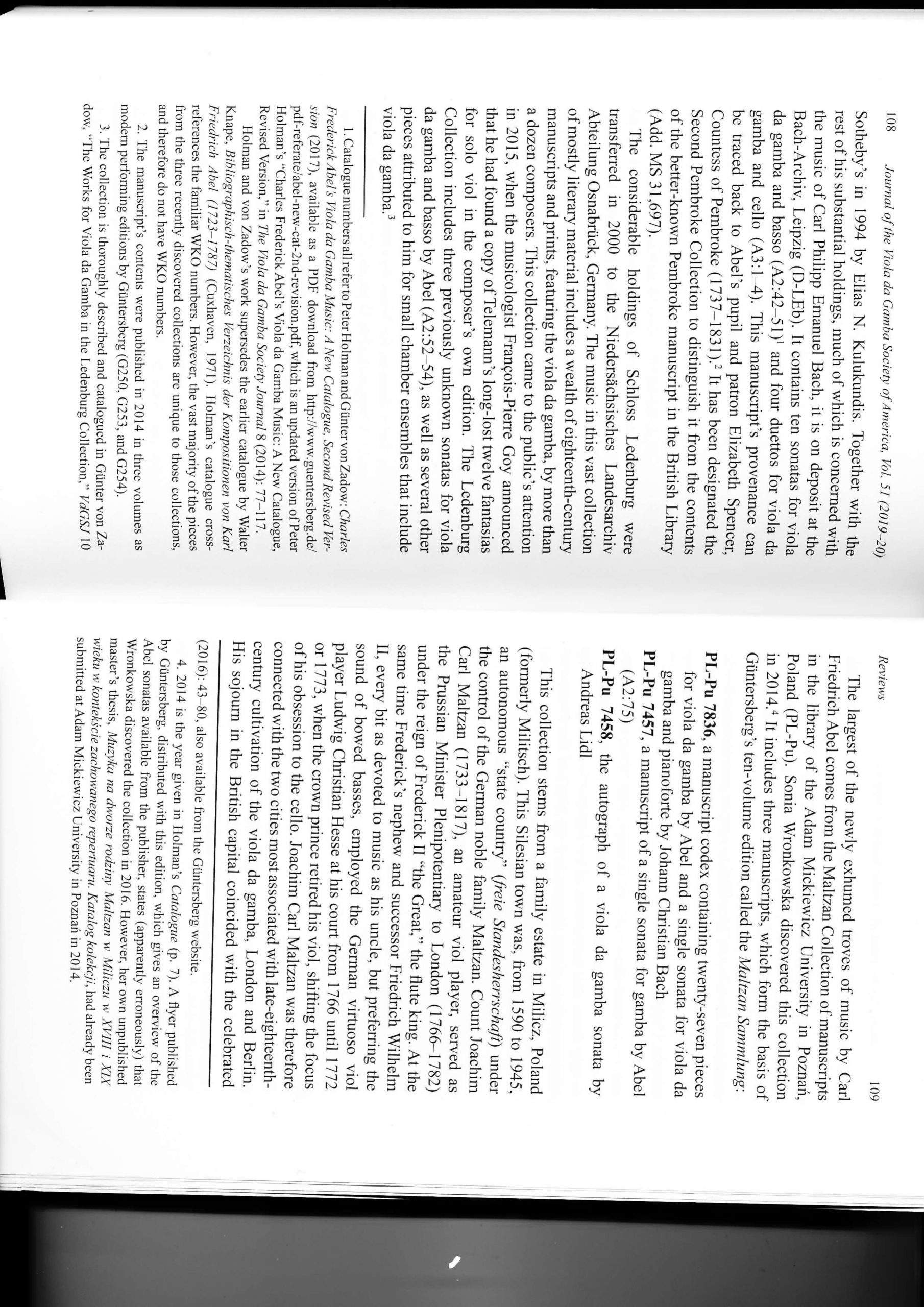 Carl Friedrich Abel (1723-1787) Maltzan-Sammlung – Ein Duett für zwei Violen da Gamba und zweiundzwanzig Sonaten für Viola da Gamba und Basso