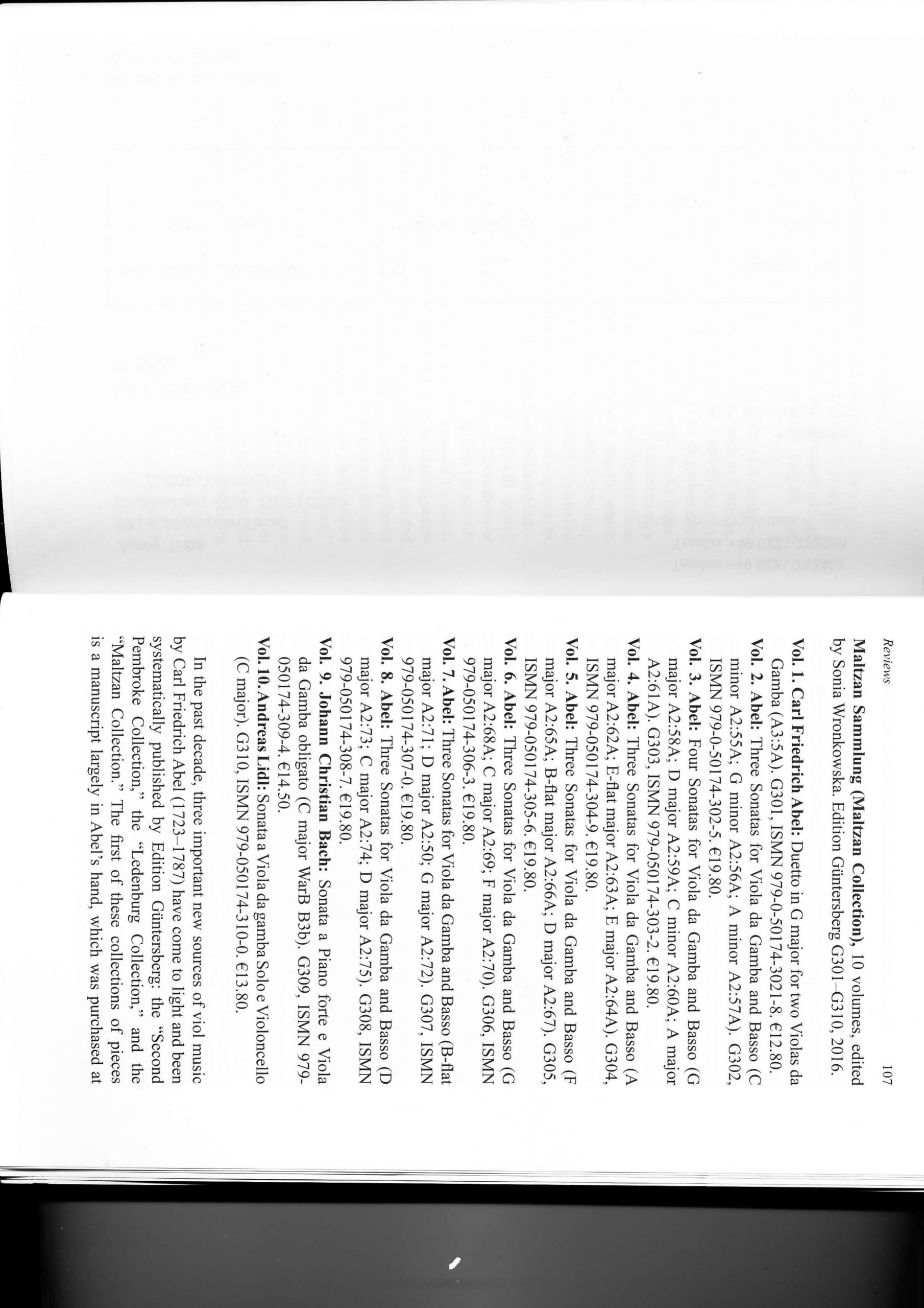 Abel, Maltzan-Sammlung, AbelWV B91–93 (A2:55A–57A), Band 2, Drei Sonaten (C-Moll, G-Moll, A-Moll), Erstausgabe, VdG+Bc, Partitur und 3 Stimmen (Violin- und Altschlüssel), 68 S., ISMN 979-0-50174-302-5
