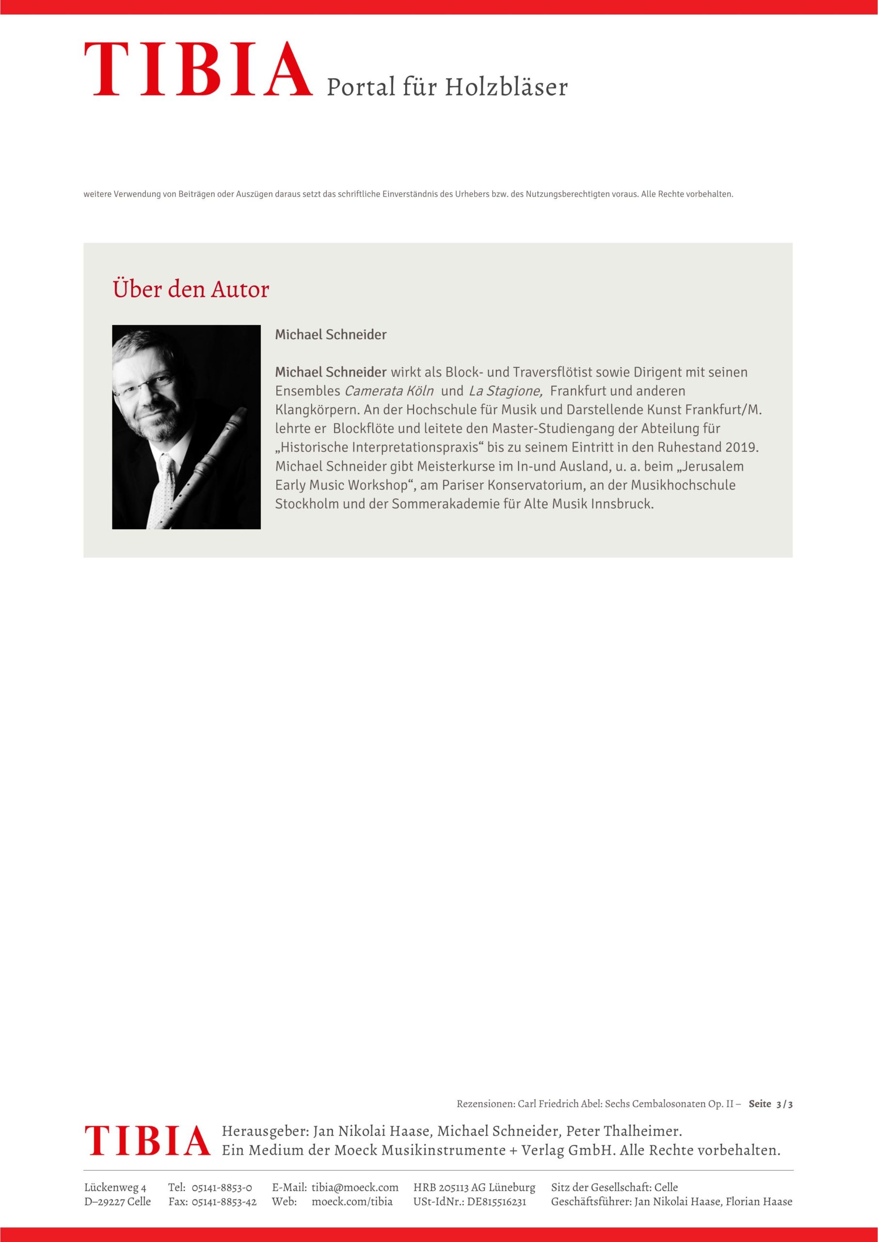 Carl Friedrich Abel (1723–1787) Sechs Cembalosonaten Op. II – mit Begleitung einer Violine/Traversflöte und eines Violoncellos