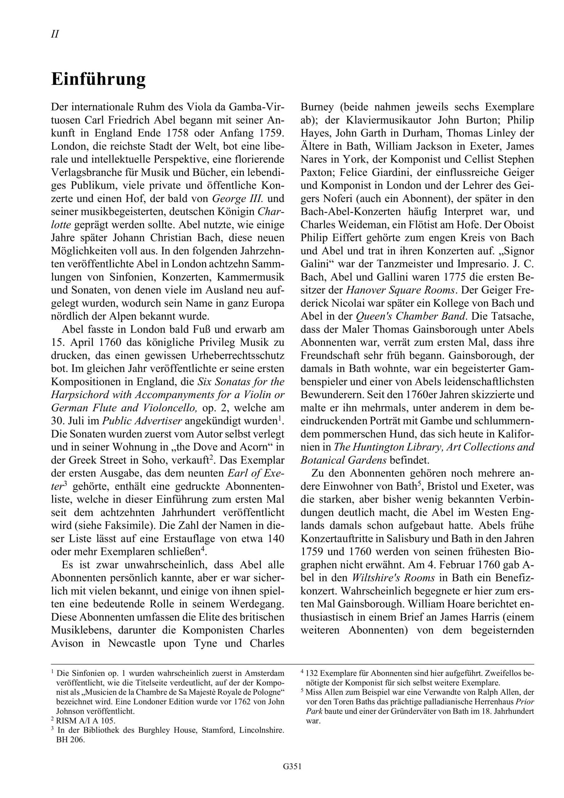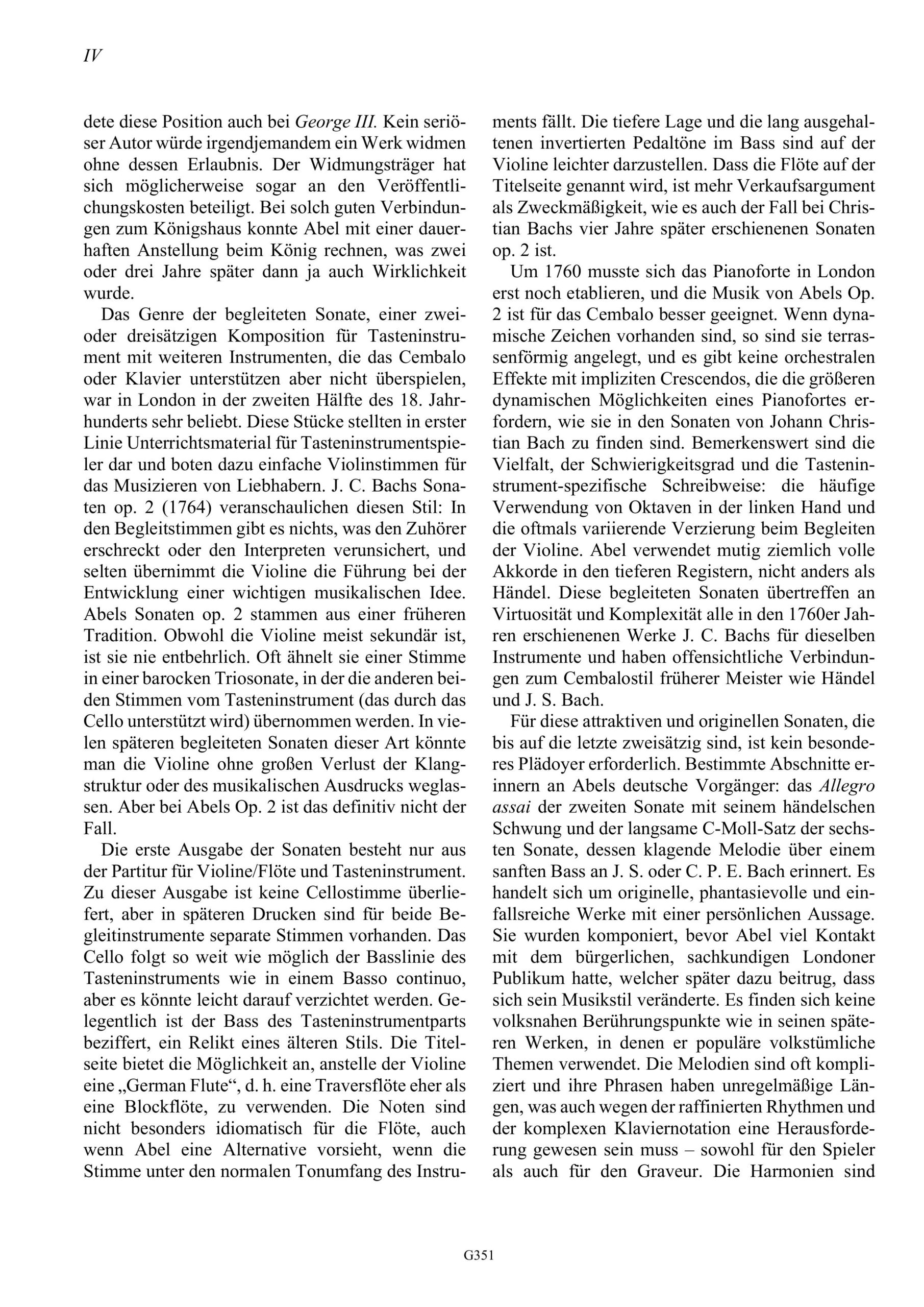 Abel, Sechs Cembalosonaten Op. II, mit Begleitung einer Violine/Traversflöte und eines Violoncellos, AbelWV C1–2, Sonaten 1–2, Cemb+V/Fl+Vc, Partitur mit Einführung und 3 Stimmen, 56 S., ISMN 979-0-50174-351-3