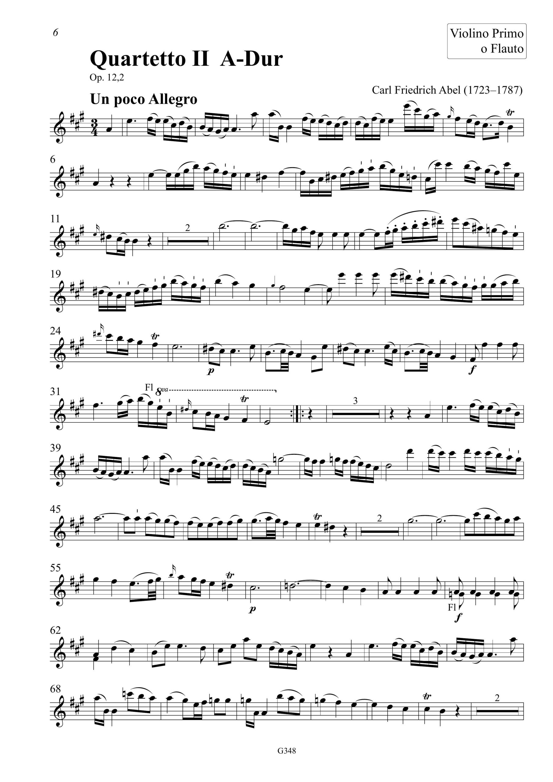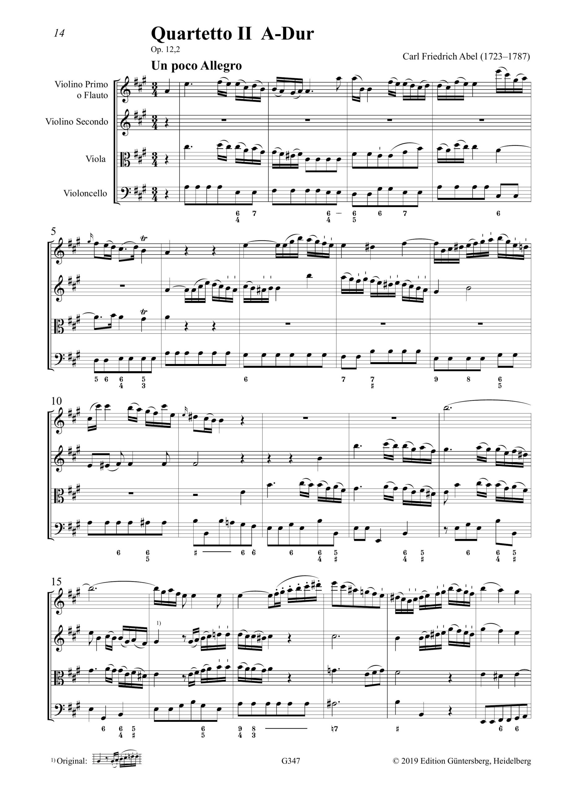Carl Friedrich Abel (1723–1787) Sechs Quartette Op. XII – für Violine/Flöte, Violine, Viola und Violoncello