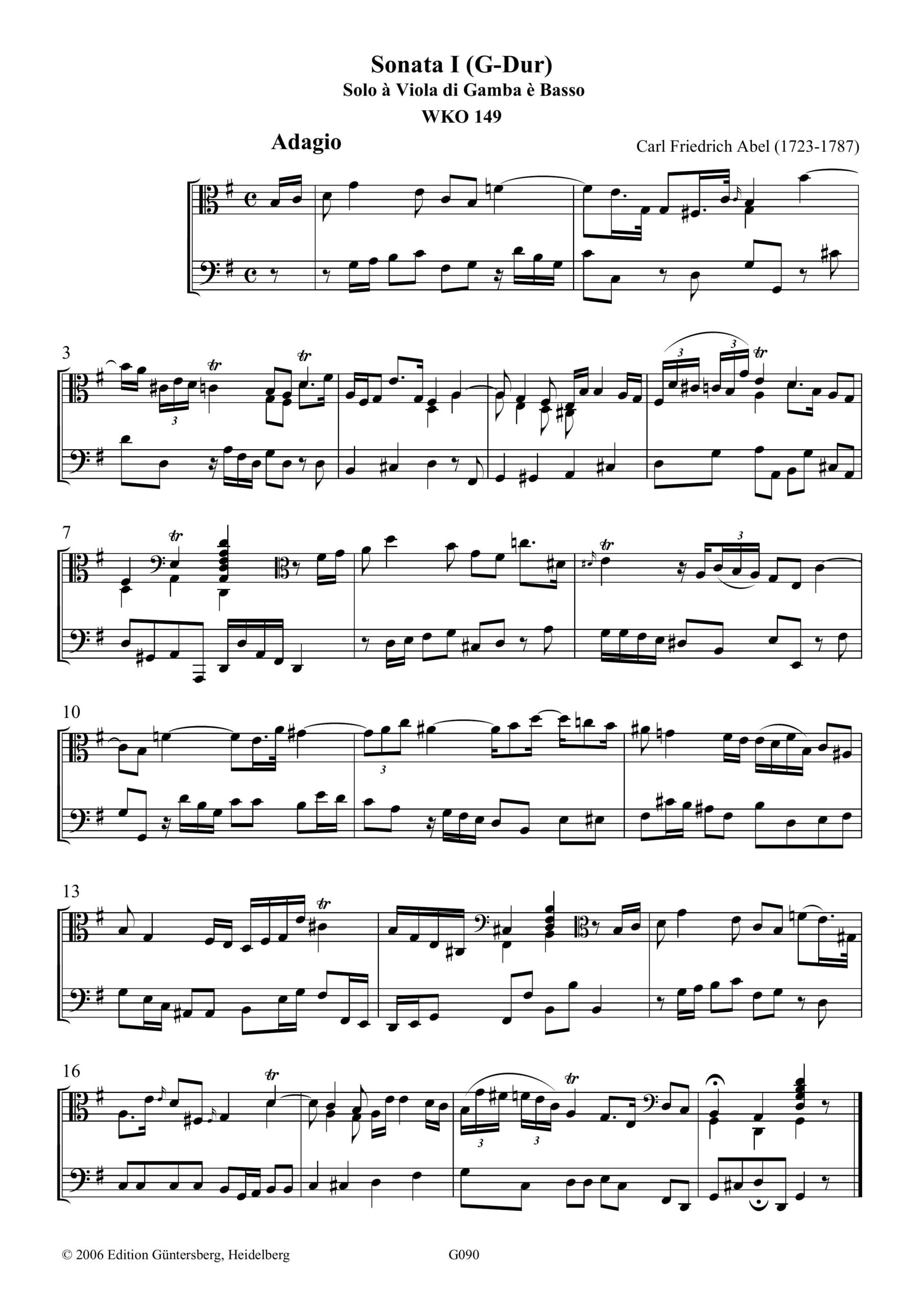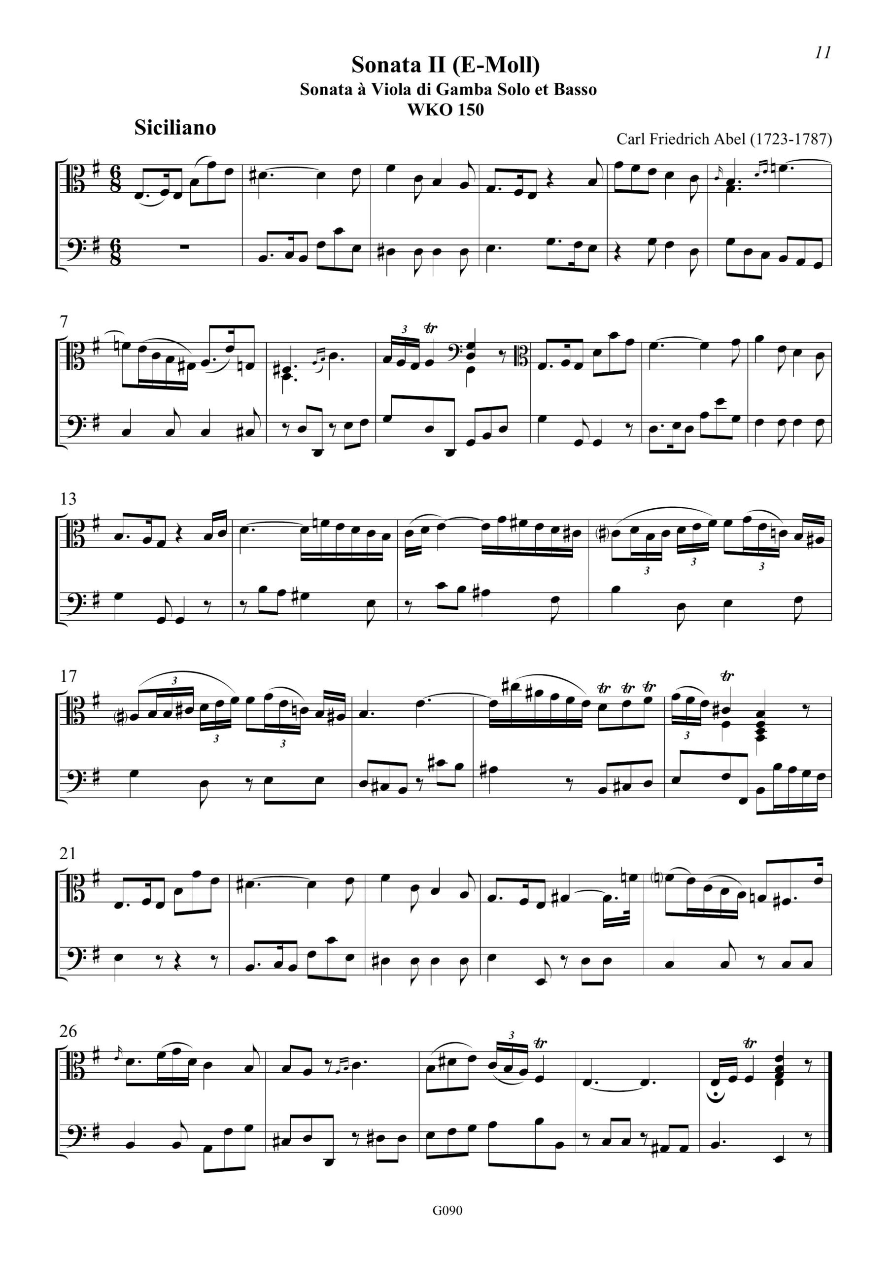 C.F. Abel, Zwei Berliner Sonaten für Viola da Gamba und Bass, AbelWV B38–39 (A2:7–8), teilweise Erstausgabe, VdG+Bc, 2 Partituren, 28 S., ISMN 979-0-50174-090-1