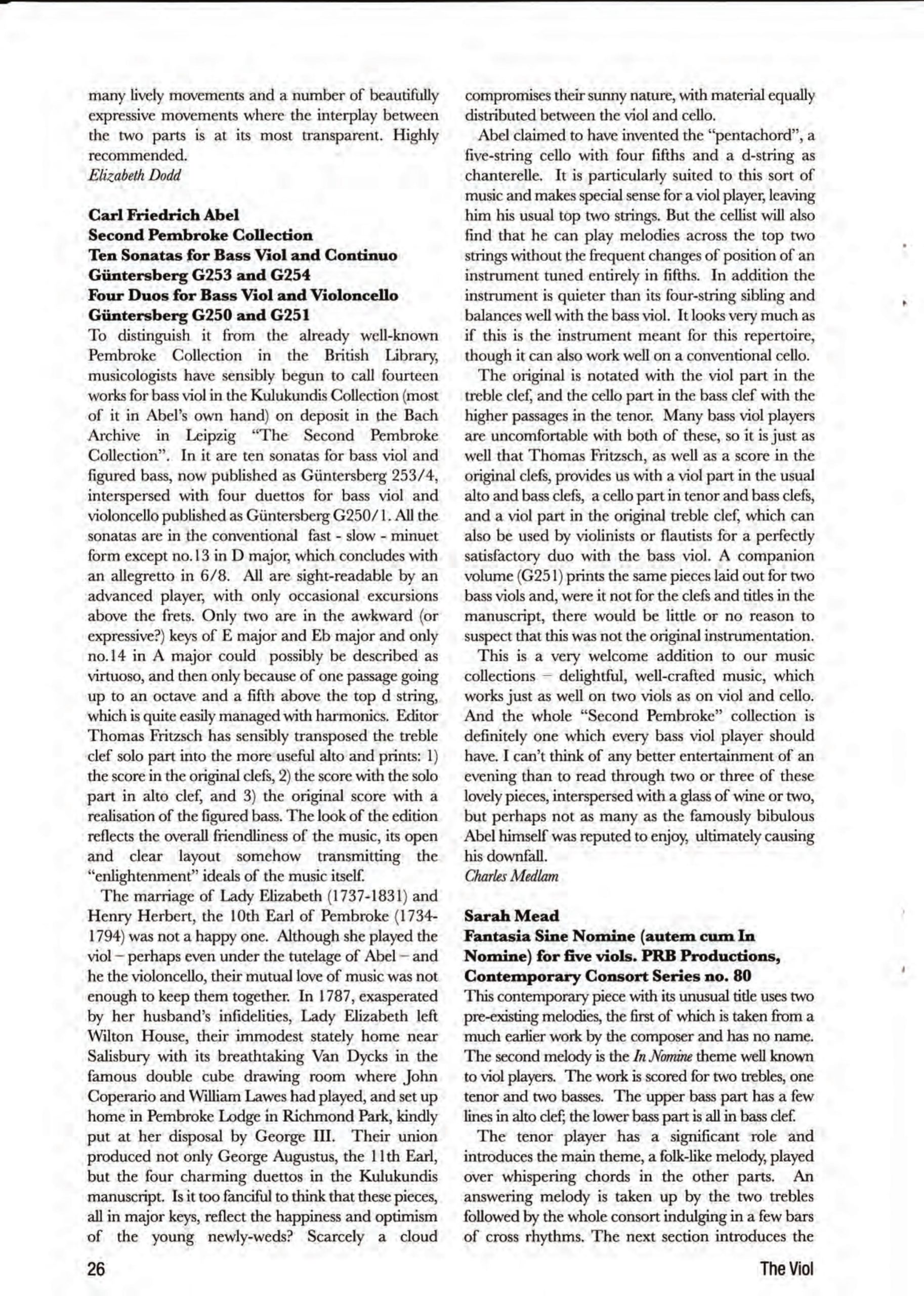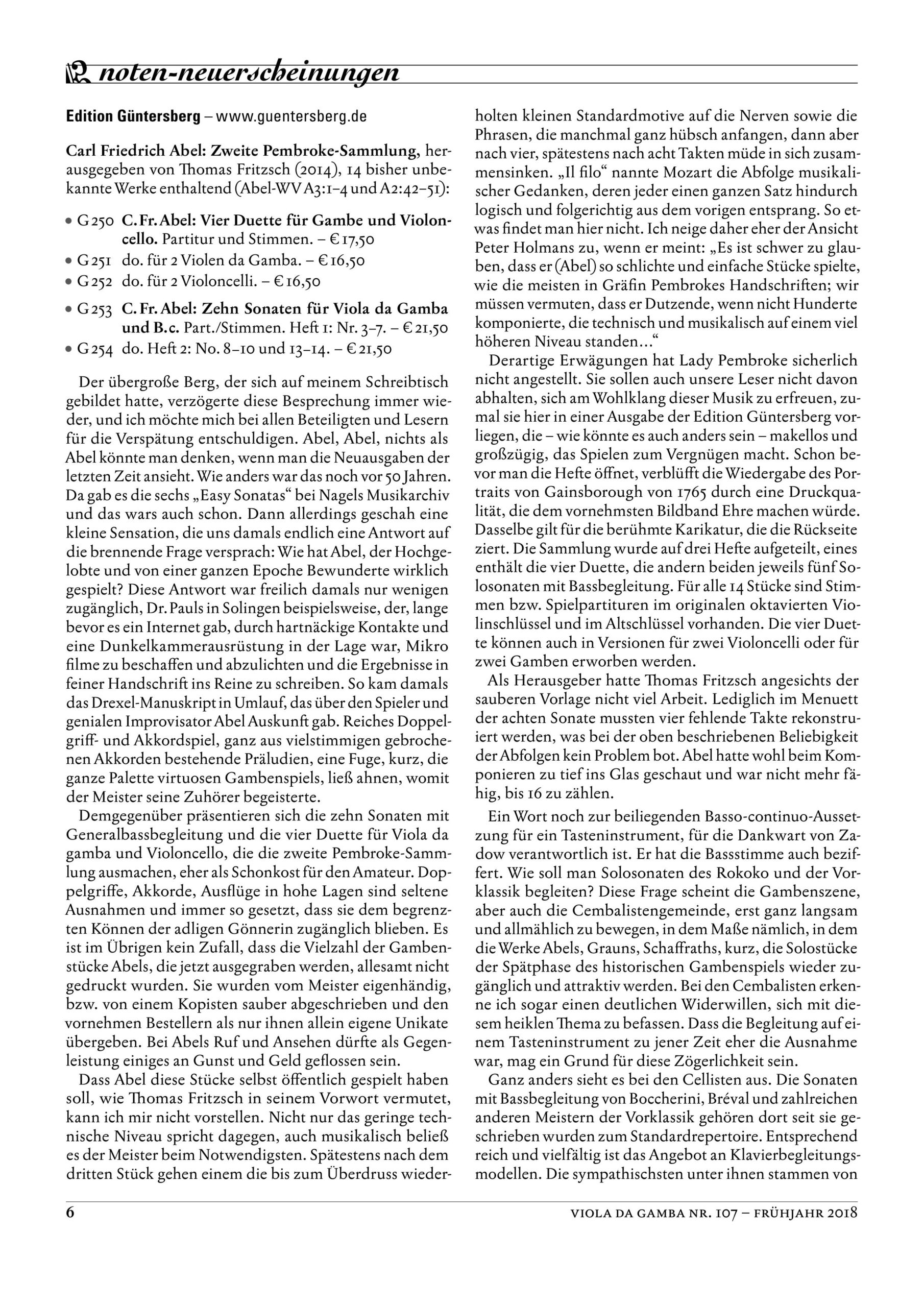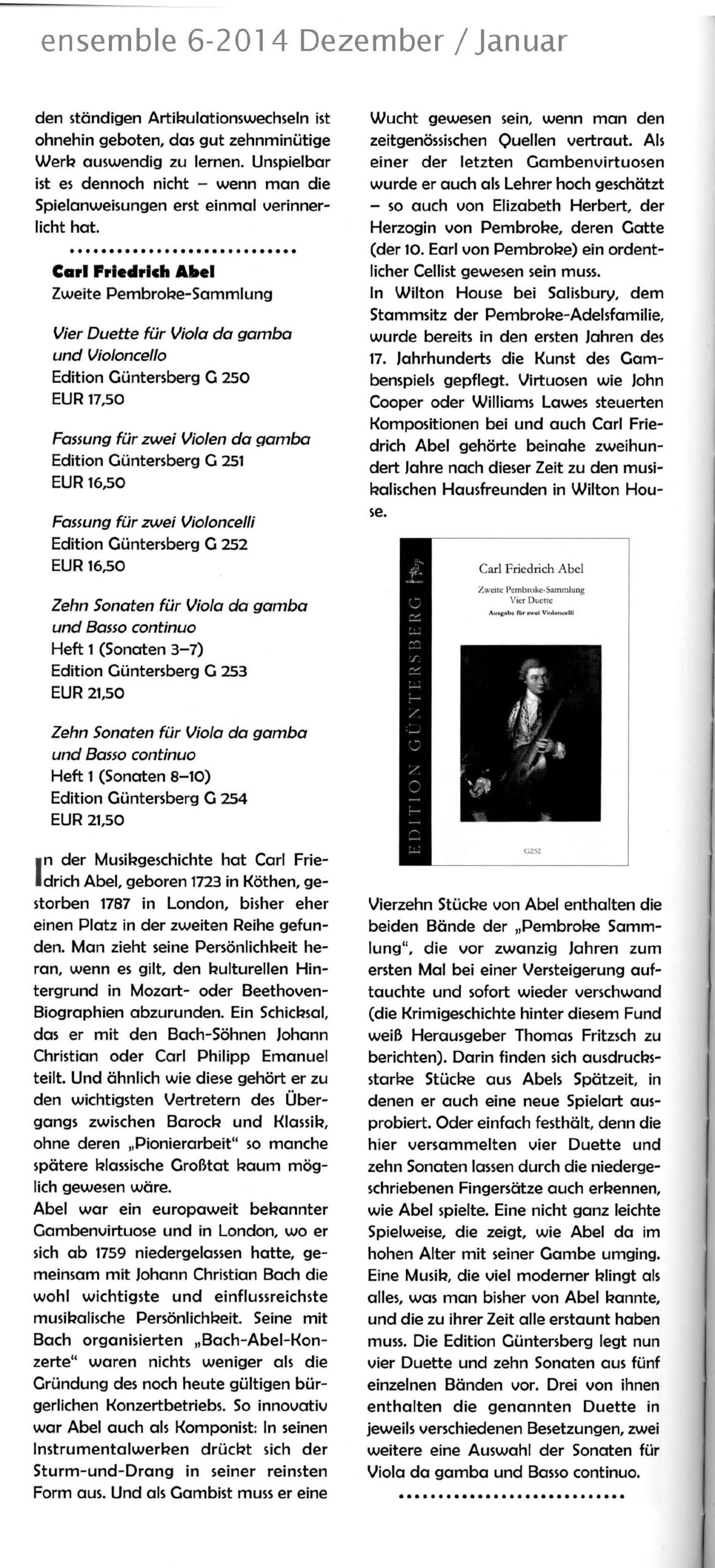 Carl Friedrich Abel (1723-1787) Zweite Pembroke-Sammlung – Vier Duette für Viola da Gamba und Violoncello, zehn Sonaten für