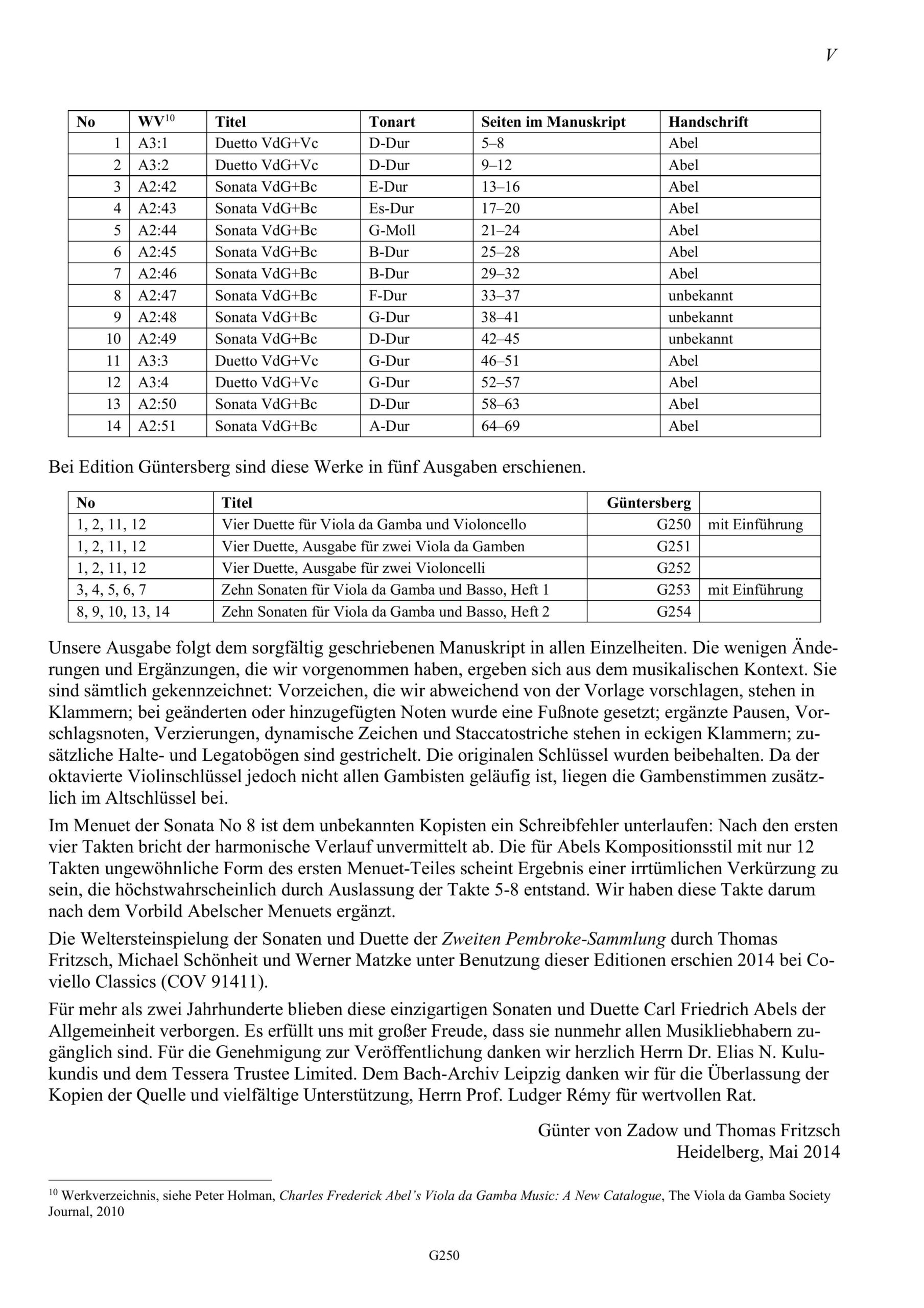 zehn Sonaten für Viola da Gamba und Basso continuo, die Abel für die