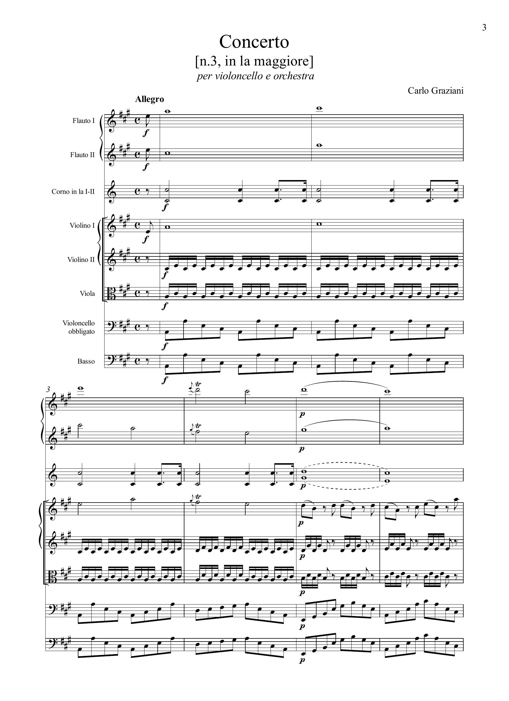 Carlo Graziani (prima metà del XVIII sec. – 1787) – Concerto [n.3] in la maggiore per violoncello e orchestra (2 flutes, 2 horns, strings)