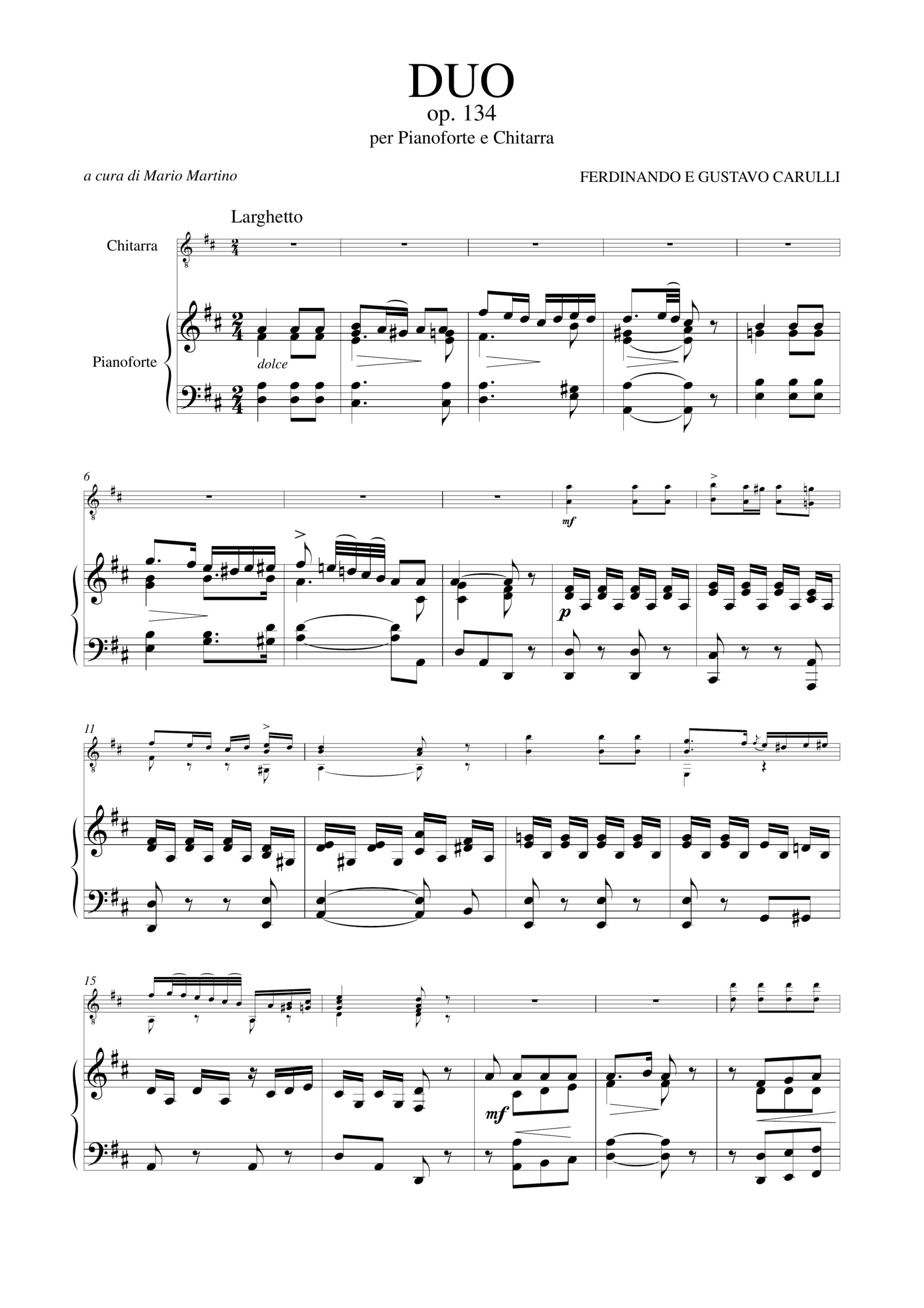 Carulli, Ferdinando – Carulli, Gustavo: Duo Op. 134 per Pianoforte e Chitarra