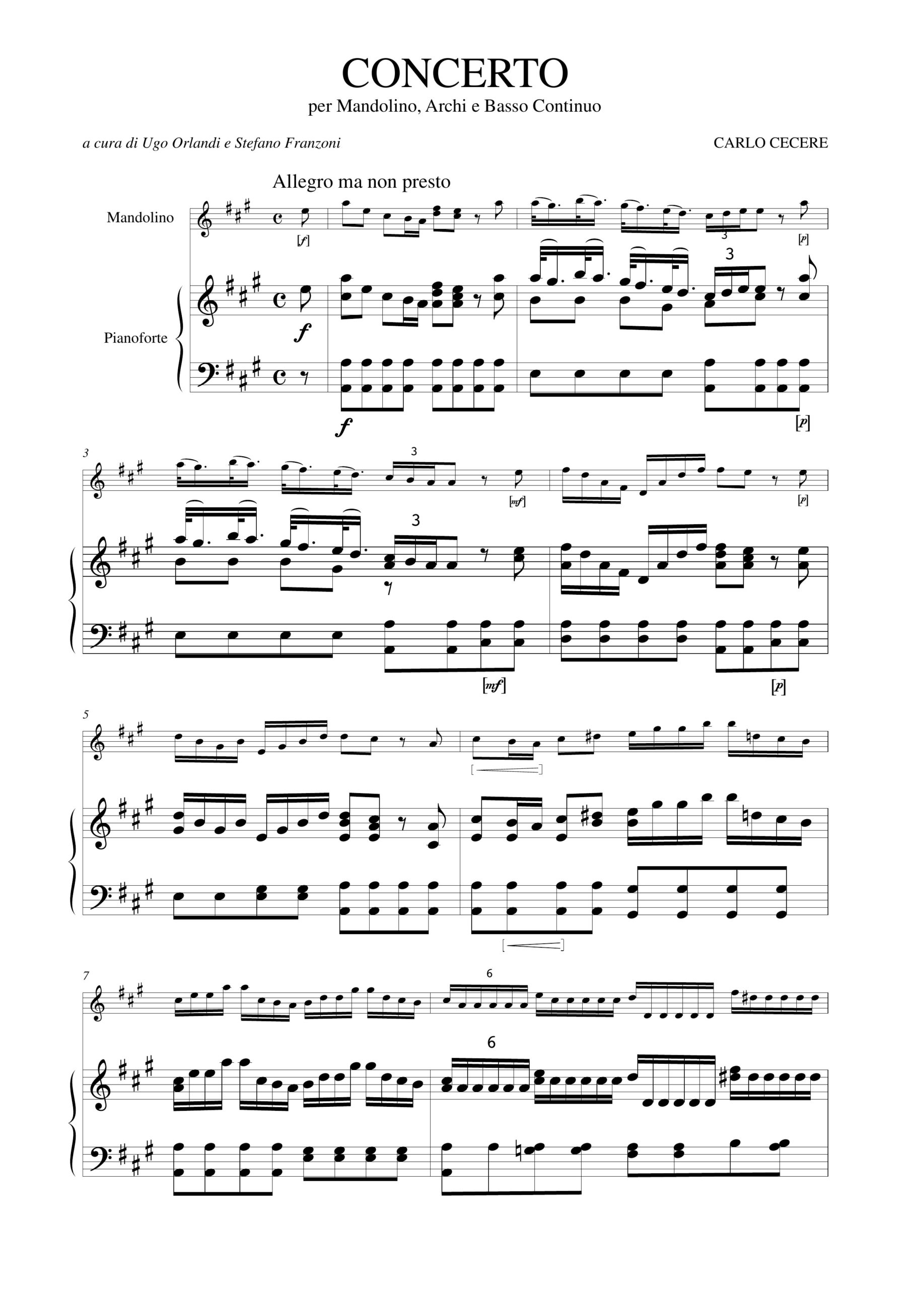 Cecere, Carlo: Concerto in La maggiore per Mandolino, Archi e Basso Continuo [Riduzione Mandolino e Pianoforte]