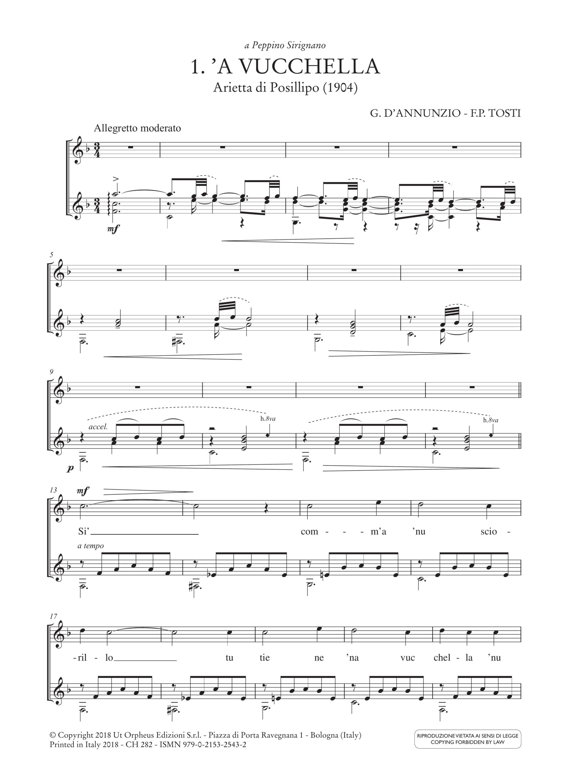 Contenuto e Descrizione: ’A Vucchella; Torna a Surriento; Core ’ngrato; ’O marenariello; Palomma ’e notte; Luna nova; Serenata napulitana; Autunno; ’A nuvena