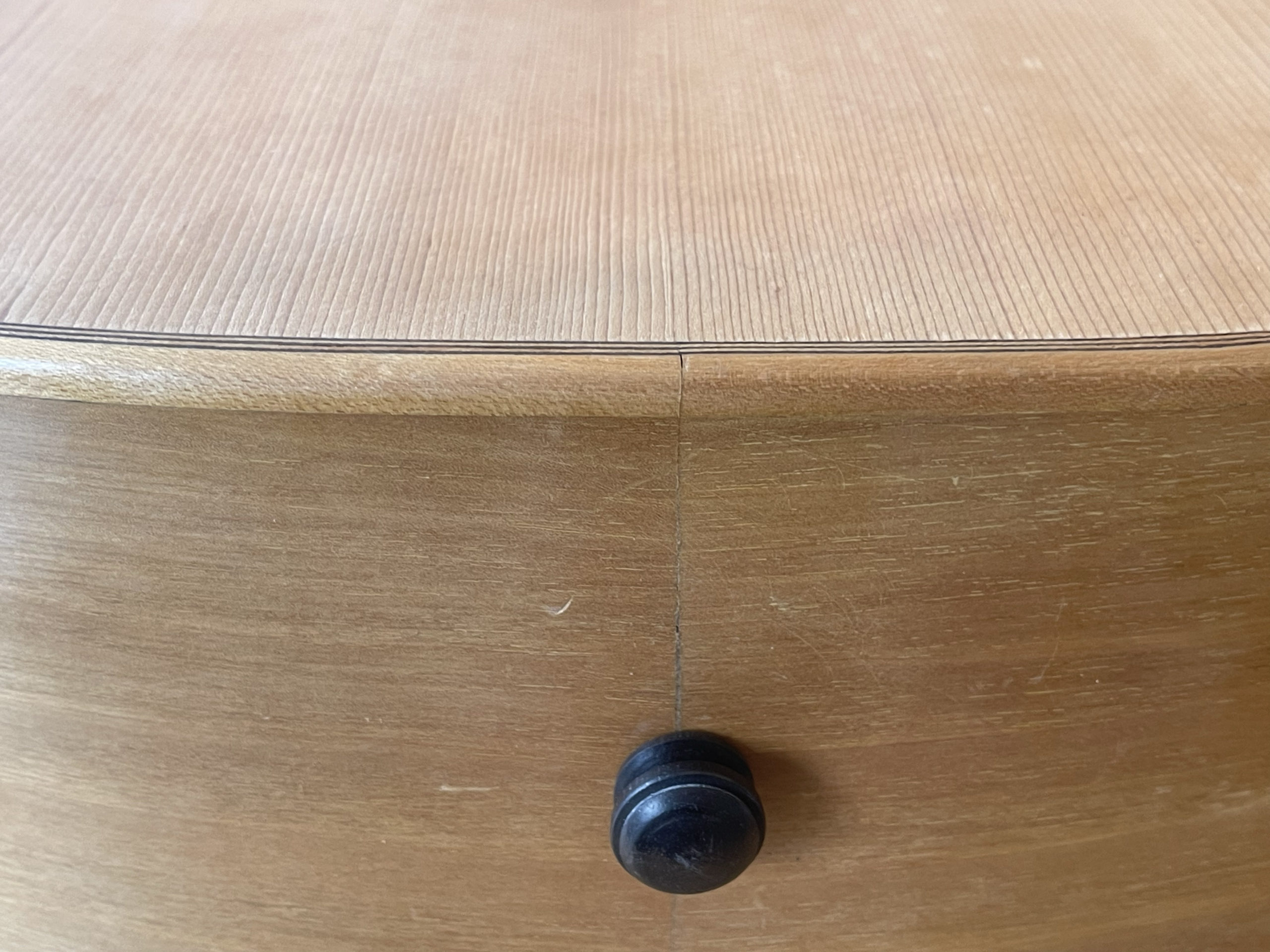 Der Steg ist leider nicht mehr sicher befestigt und würde sich in absehbarer Zeit vollständig lösen. Im Kaufpreis ist jedoch die vollständige Instandsetzung enthalten, die in der Meisterwerkstatt der Gitarrenbauerin Christina Müller in Basel ausgeführt wird.