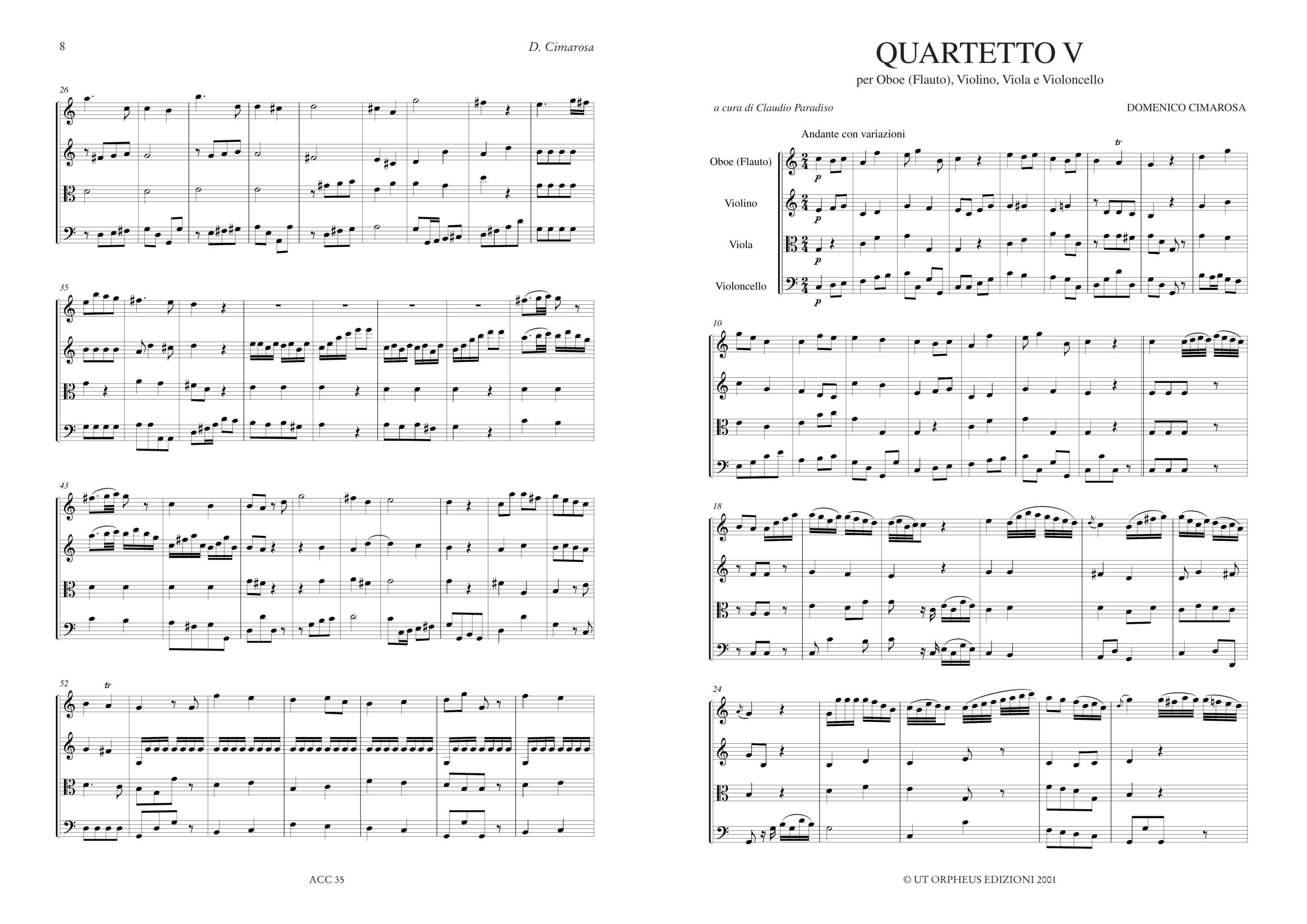 Cimarosa, Domenico: Quartetto N. 5 in Do maggiore per Oboe (Flauto), Violino, Viola e Violoncello