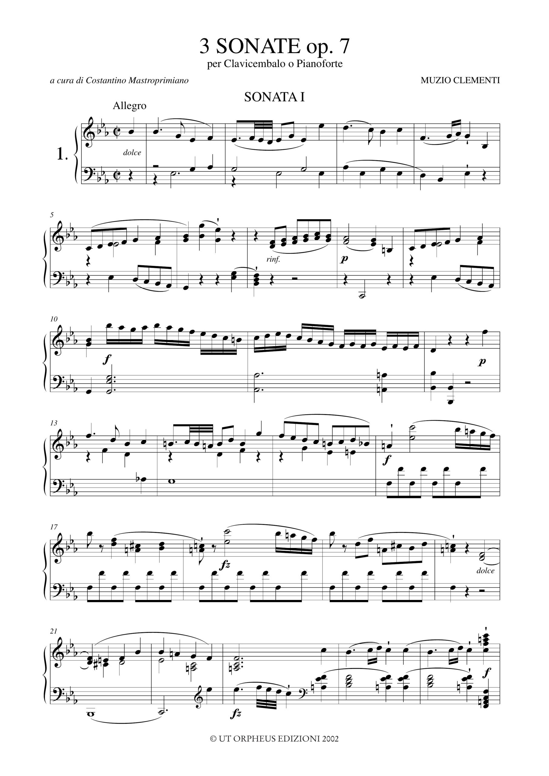 Clementi, Muzio: 3 Sonate Op. 7 per Clavicembalo o Pianoforte
