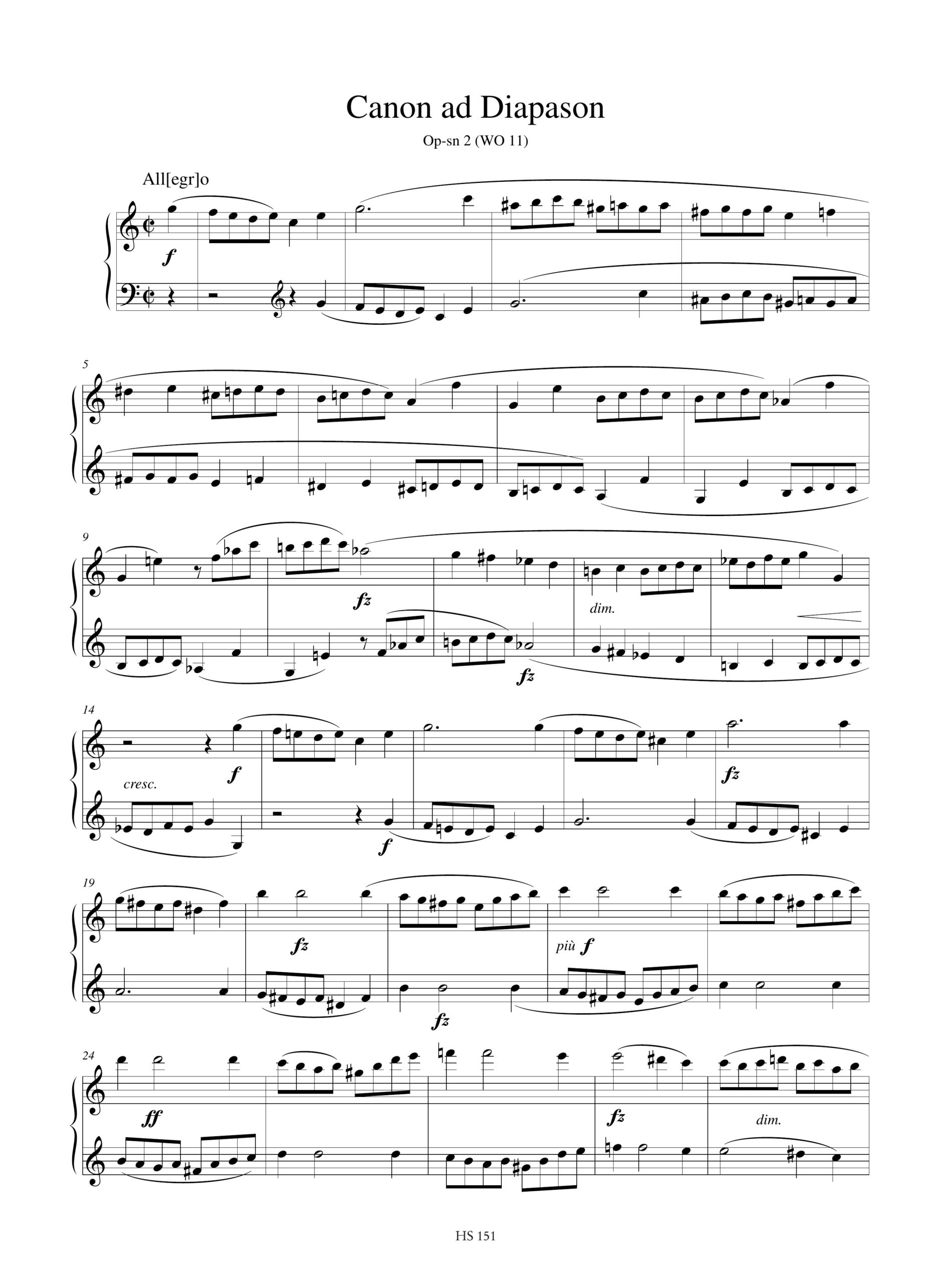 Clementi, Muzio: Canone Op-sn 2 (WO 11) e Allegro Op-sn 10 (WO 22) per Pianoforte o Clavicembalo